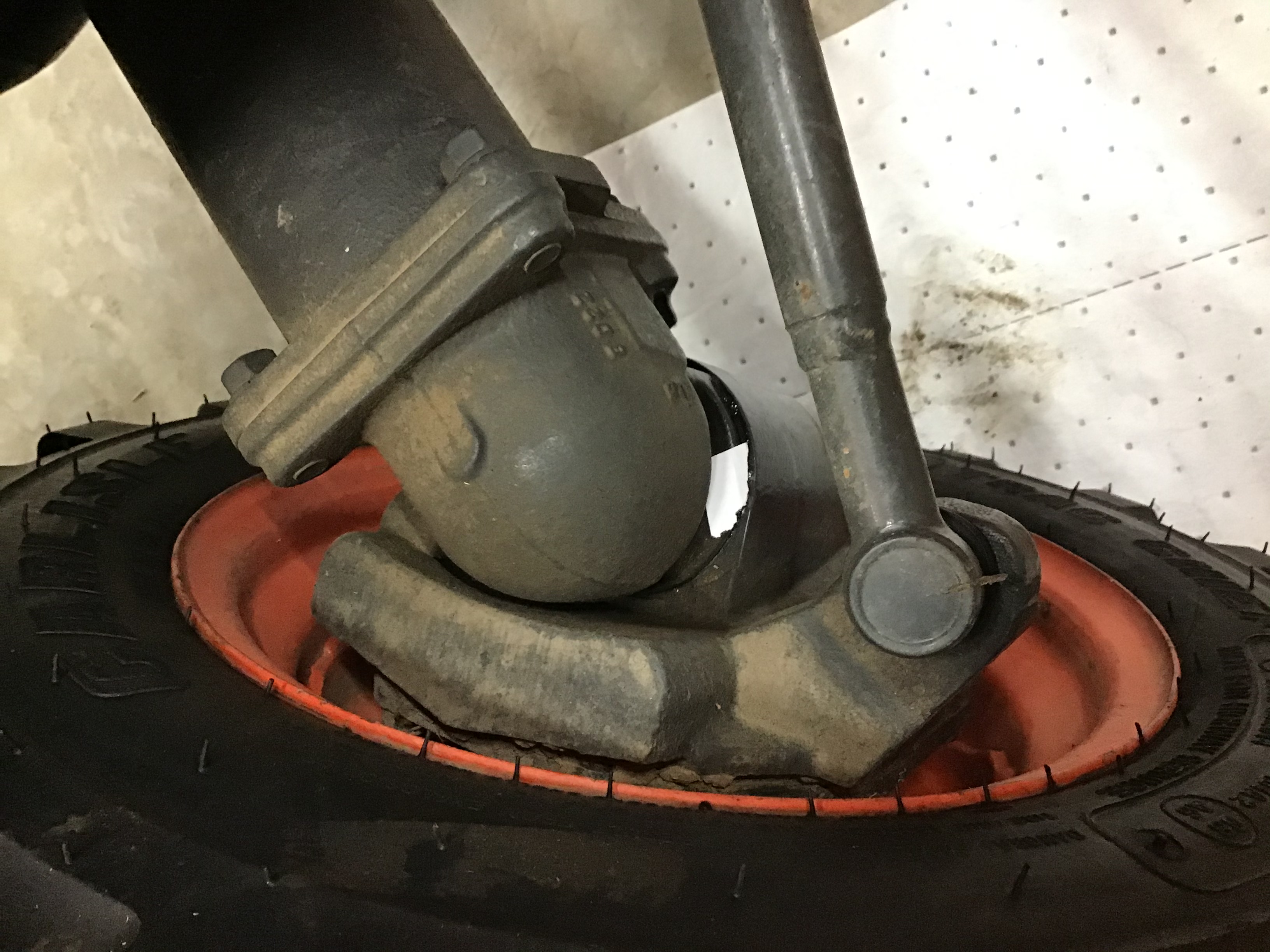 Notice this small leak from RH front axle (wheel hub) leak is where white paper is