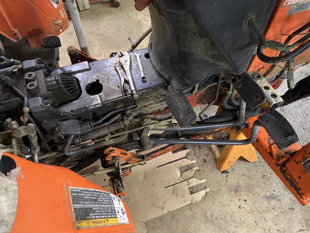 Last pic shows the location of the hole that has be drilled in the "tunnel" to access the roll pin holding the old yoke on so that it can be removed and replaced.