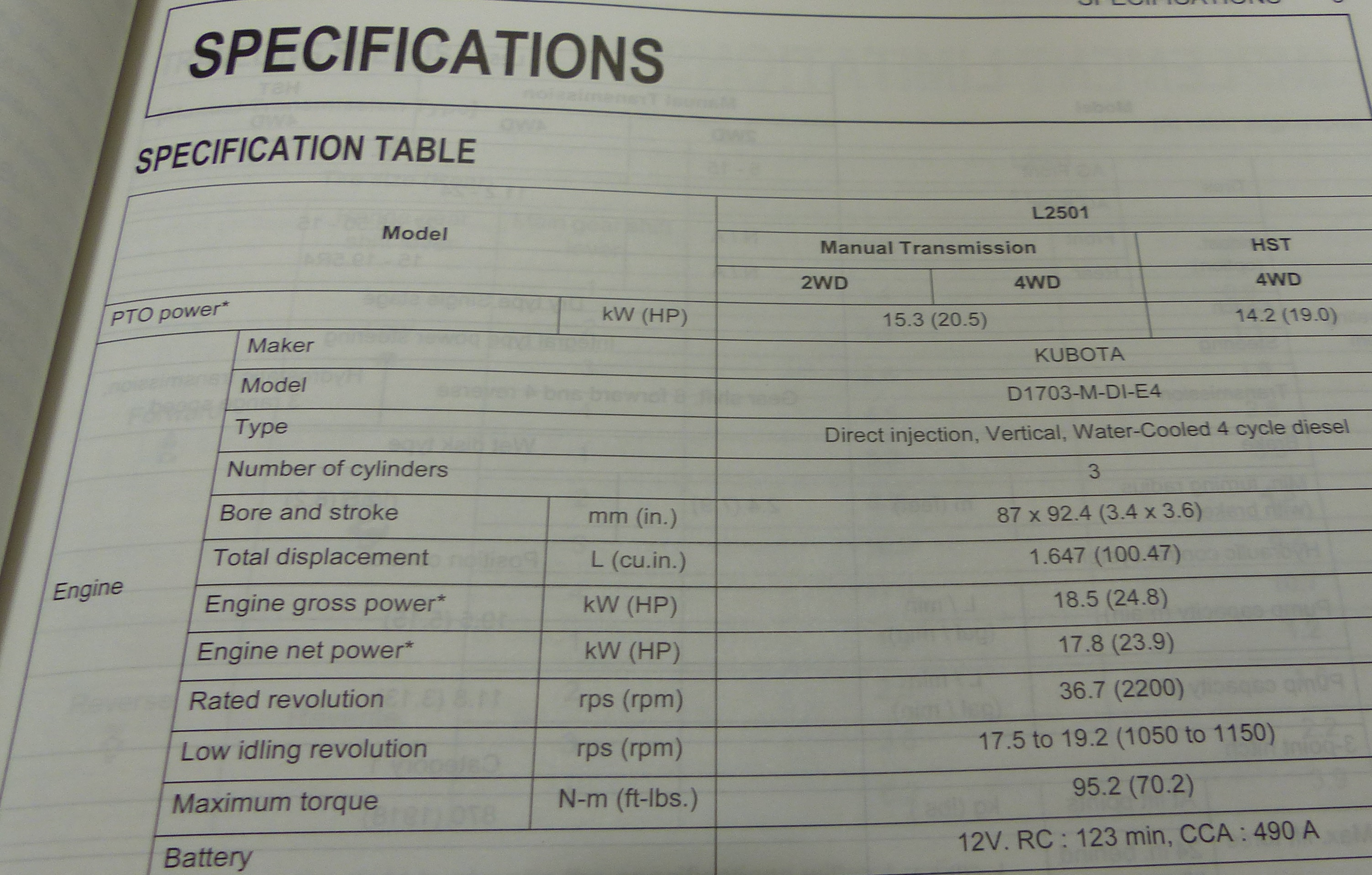 I was looking at a Kubota L2501 this week and have been trying to look up engine performance charts on this engine with no luck. Does anyone know where I can find this info on Kubota D-1703-M-E4B direct injection engine? I am curious what was changed from the E3B interim tier 4 engine that was rated at 2800 RPM.