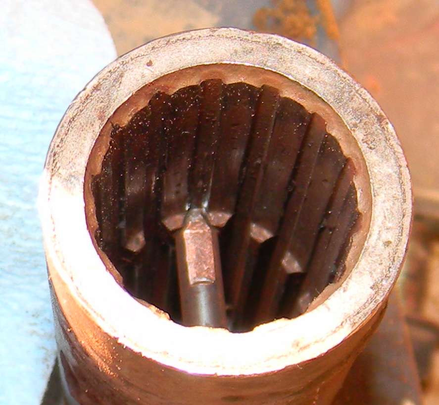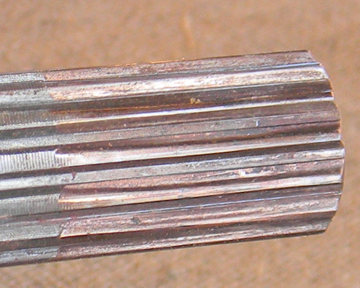 Visiting my wife's family in MO and the farm of which we are part owner, my brother-in-law, who manages the farm, said that the L3000 he uses mainly for light work around greenhouses because if its small size was making a random clunking sound, forward and reverse, any gear. The tractor has 1,500 hours. My brother-in-law's preventive maintenance is not the best. My other brother-in-law came over Wednesday and we tore it apart finding the problem was primarily a trashed coupler between the FWD drive shaft and front diff input shaft, but the more we inspected the more expensive we found the problem to be. Splines on one side of the coupling were completely stripped out. The clunking was caused by the shaft jumping teeth as the tractor goes back and forth. Splines on both the drive shaft and driven shaft. Since the driven shaft is also the differential input gear, the gear set needs to be replaced. We also found the front and rear trunions of the front axle are severely worn. I am surprised there is no lube fitting on these trunions. The pictures show how badly the trunions are worn, and the bushings are almost completely trashed. The front axle was actually kind of flopping around under load creating misalignment of the splined shafts and contributing to the spline failure (shaft was fine on the other end where it couples to the FWD drive gear out of the bottom of the transmission. I remember my old L3710 having grease zerks on the trunion caps. My L5710 has much beefier end caps with 50 hour lube intervals. I am really surprised the L3000 has no means to lubricate these joints. Has anyone else had a similar problem? We have not yet checked with the dealer for parts cost but I expect it is going to be pretty expensive as the worn trunions are part of the front axle casting so nearly the entire front end needs to be replaced. If the new trunion caps don't have grease zerks we will drill and tap similar to those on my L5740. So much for anticipating a boring Thanksgiving weekend.