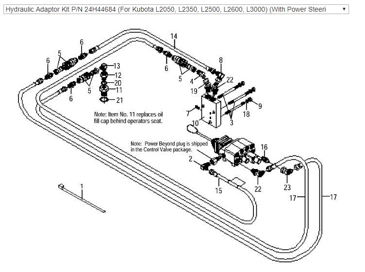 Problem is, there's no hydraulic ports that I can find. Local dealer said they'd install it for $6,600 parts and labor... I can buy a whole other tractor with a FEL for less than that though. I've seen a few local used ones, but the hydraulic hookup is my hangup. I'm not keen on cutting and brazing in ports on the steering lines (only external hard lines I can see) but I've seen on here someone mounted a "take off" block (my wording trying to describe it) to the outside of the power steering take off of the pump (I can't post links yet but the post is "274957-kubota-3000dt-adding-remotes-filter")