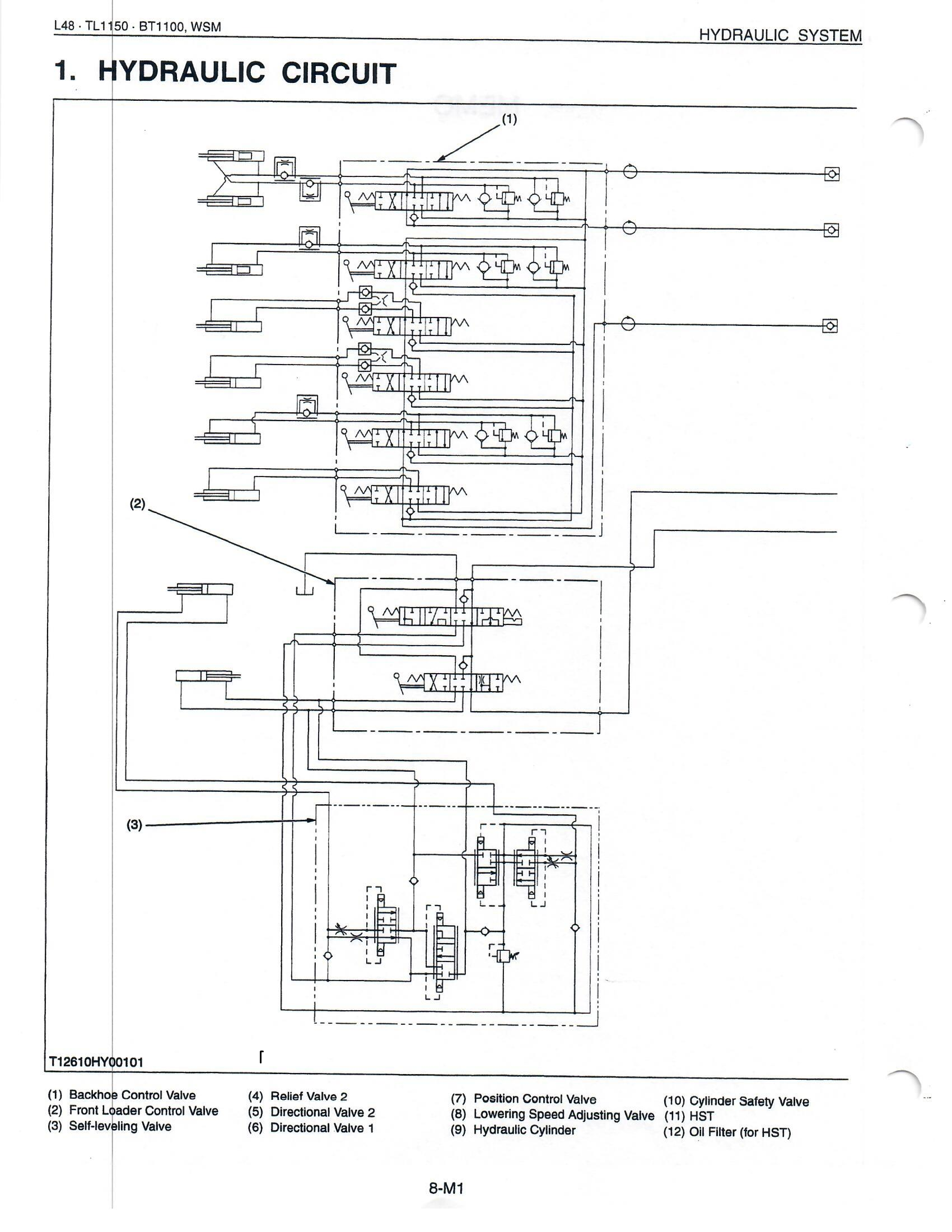 L48 WSM, along with the page out of the WSM covering the hydraulic block. Hopefully you may be able to advise me on what the simplest option to add the TNT capability might be. I'm sorry....you're dealing with a rookie here and I've never read a hydraulic schematic before and I'm not sure I understand how the power beyond feature of the control valve and the tee you suggest work together....and I don't I fully understand power beyond, so I'd like to explain what I think you're saying and then you can correct me if I'm wrong. What you said about maybe not being able to use the rear QA's that supply the backhoe makes sense to me, but maybe you can tell from the attached schematic whether I can use those QA's or not.