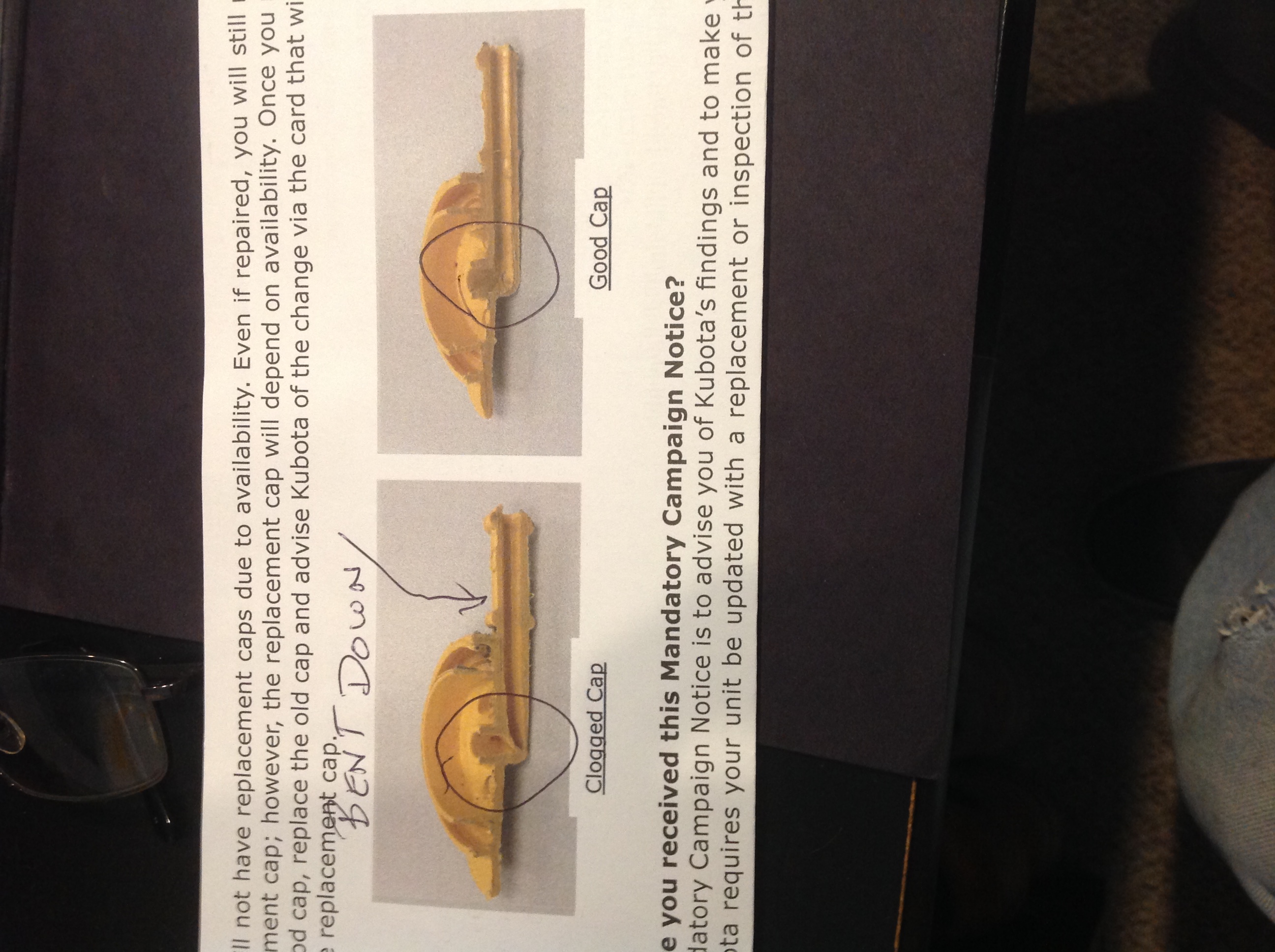 I think the real issue is with the solid blockage as shown in this picture, from the molding process. I'd bet the red and blue dots are to signify the caps were inspected after the recall, and likely had a drill bit ran through them to insure the passage is cut open. The shavings that PaPow had in his were likely from this clearing process. Makes me wonder if PaPow's cap would really hold back the pressure, or if the shavings would allow air to pass to vent the bottle.Pic of the bent pin that is causing the blockage that a member asked about....View attachment 580656