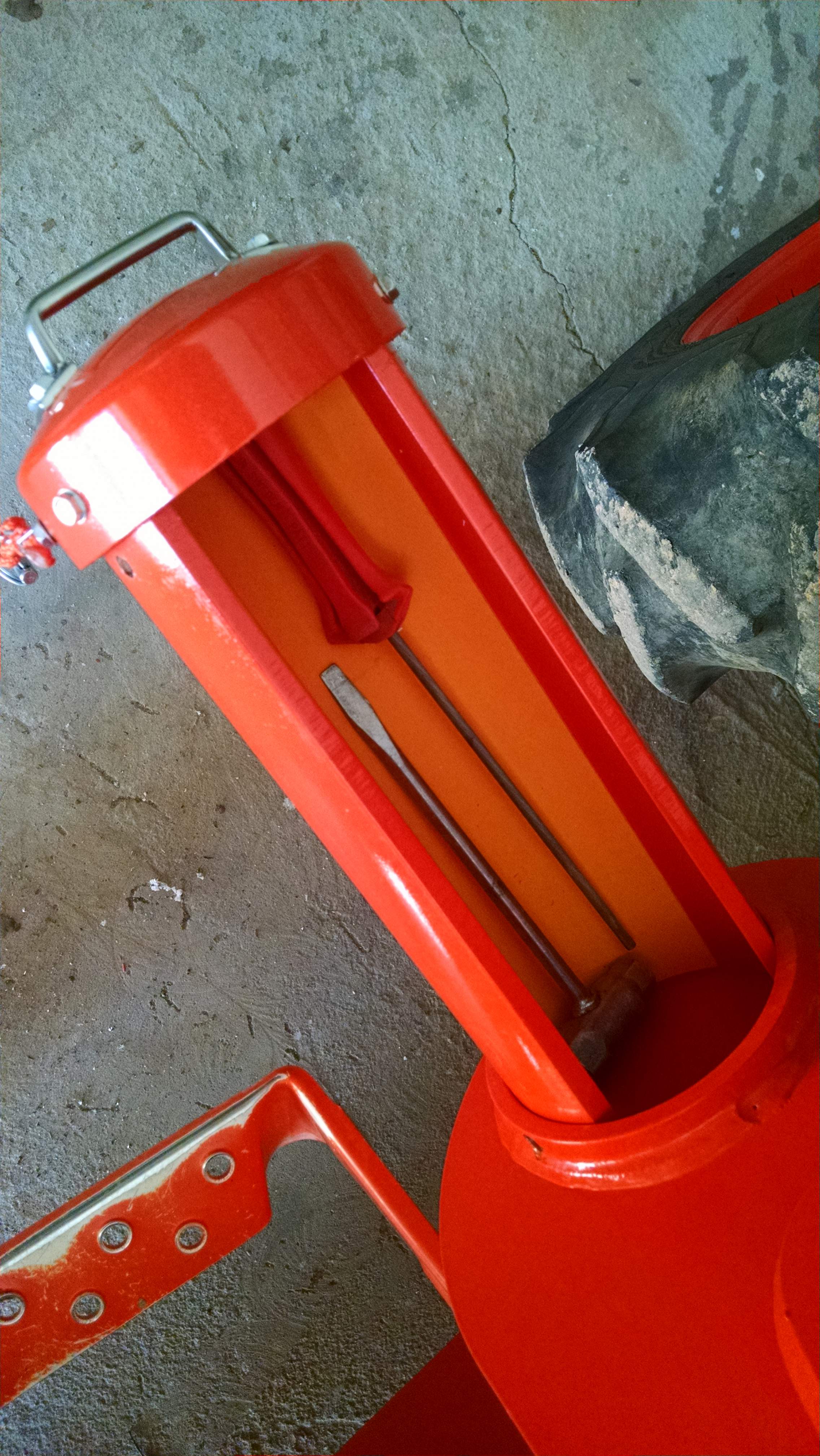 Great use of an unusual space! I may adopt your PVC idea but affix it to the ROPS (for longer tools). I guess that water could penetrate if it were left outside and it rained. Perhaps you could, "incorporate an O-ring into your ingenious invention". One that would slip over the 4" PVC and would be retained by the cap, A Dremel tool to divot the circumference of the cap to get that snug fit.