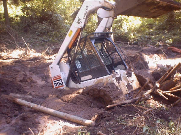 Getting stuck is not a concern(given the current conditions). During early June when the water was still high with snowmelt and lots of rain(takes a month or two to disappear), I crossed a similar water hole that had the distance, but not the depth-somewhere a little over a foot. Same type of bottom though, hard sand with a silty muck layer(1-2"), and, I crossed it carrying my 17hp riding lawn mower with the FEL to mow a patch of clover on the other side and I crossed it while carrying 1300#'s of lime in the FEL, and 700#'s in the broadcaster. Tires didn't even come close to spinning while just skimming the water with the lawn tractor tires to keep a low center of gravity. I also know how hard the bottom is because I had to pound a 2' piece of re-rod into the bottom and it took a little umph with a 5# mallet. So....I appreciate all the comments but I'm still not sure what I will do. I will cross it, but maybe by bridge, or maybe by tractor. Will probably cross with ATV first to get a feel for the bottom, see how much the dry weather has lowered the water level, and talk to the dozer/backhoe operator to make my final decision. Sounds like most people are concerned about getting stuck, I'm more concerned with damaging the tractor with a 10 second, 2' soaking-waranted concern??? Thanks for all the input, and if I get into trouble on this one I'll be sure to include the pictures for everyone's viewing pleasure.