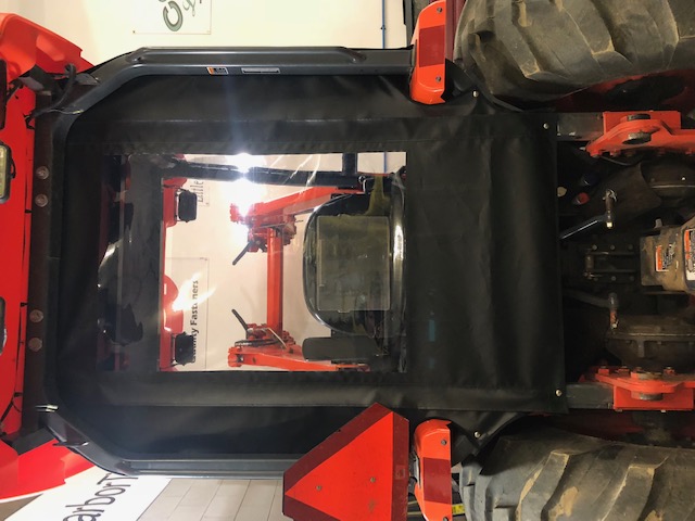 The cab is made in sections that can be removed and the doors are on pins so they are on or off in a minute. The whole cab was taken off the first Summer, but not since. I'd like A/C for hot weather, but for now I just lift the doors off and run a fan. That's more comfortable than sitting in the sun.