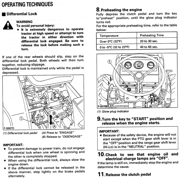 Since I didn't get the owners manuel yet I have (I hope) just one more question. How do I start it cold? Do I need to turn on the key and wait for a light to go out indicating that the glow plugs are hot and ready to fire up? I did that and waited but no lights went out. Sorry I'm confused as to how to properly start it when cold. If I had the manuel I would not be so in the dark.