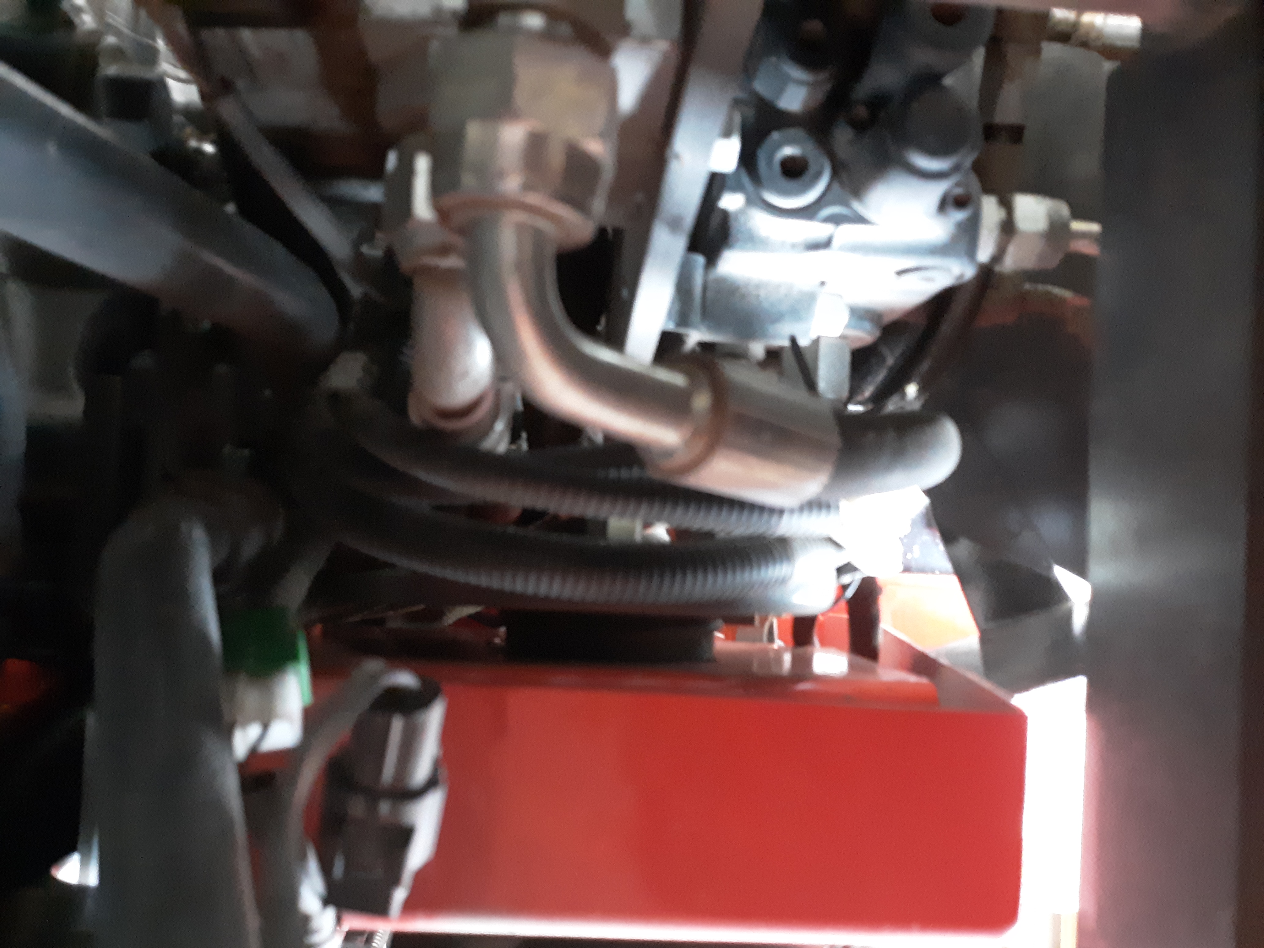See the pic, the instructions state the hose with the red tape....neither hose has red tape and both hoses have the same ends and are the same length.