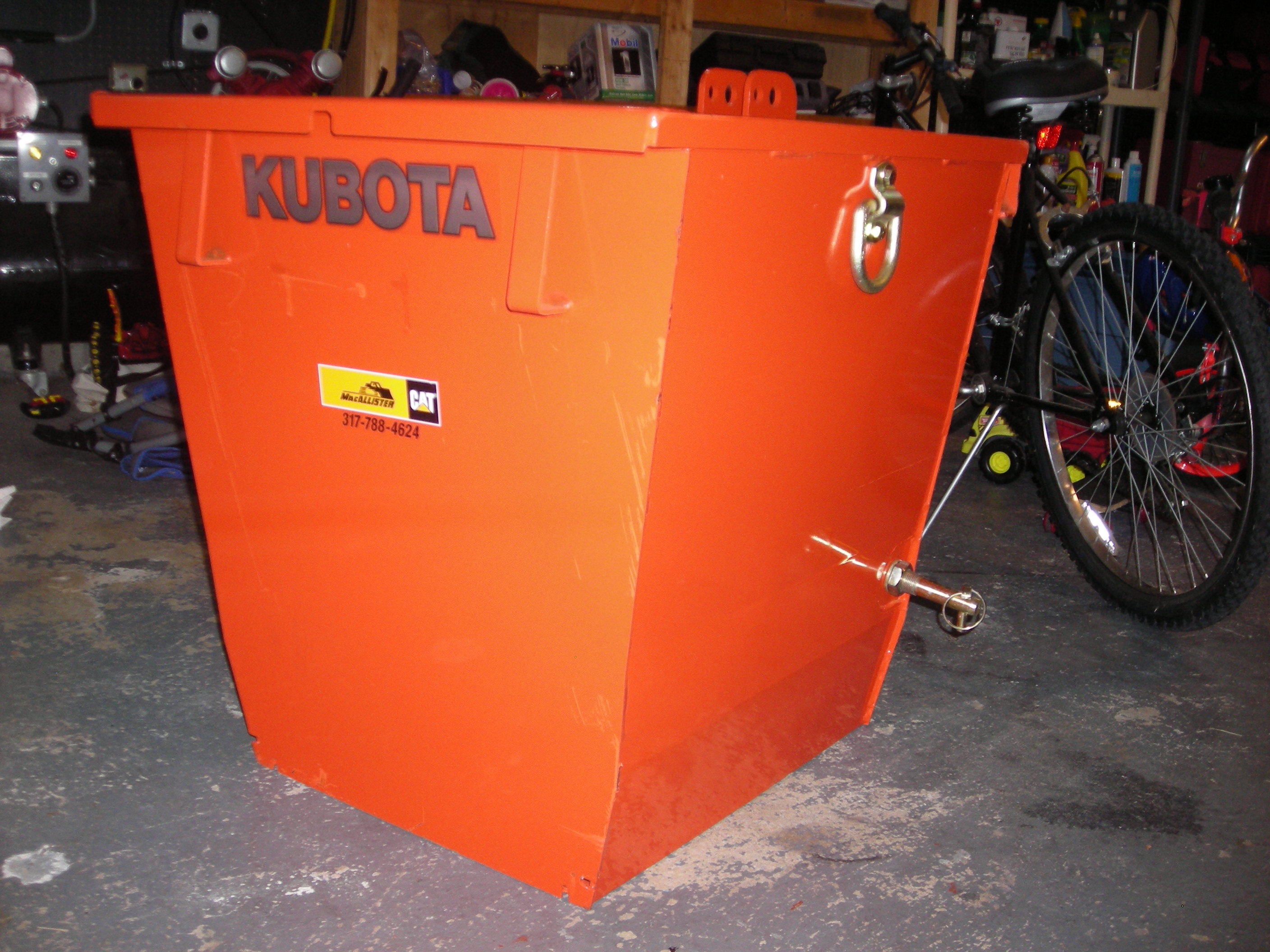 I bought my hooks from Tuck n Tow. You can actally fit 1/4, 5/16, or 3/8 chain in them. I have only used 1/4 or 5/16 chain so far. I have only lifted about 700 pounds, and never used all 5 hooks at once. But, like TripleR said, I use 2 to 4 hooks at a time to loop or balance out load. I normally use them to load an extra implement in the back of my bed (box blade, pulverizer, etc) or to move my sub frame and snow blade around if I don't want to mount it to tractor. With the heavy duty bucket, there was no need to weld a reinforcing pad. You may want to consider the reinforcment pad between the hook and the bucket with the standard duty bucket. Philip.