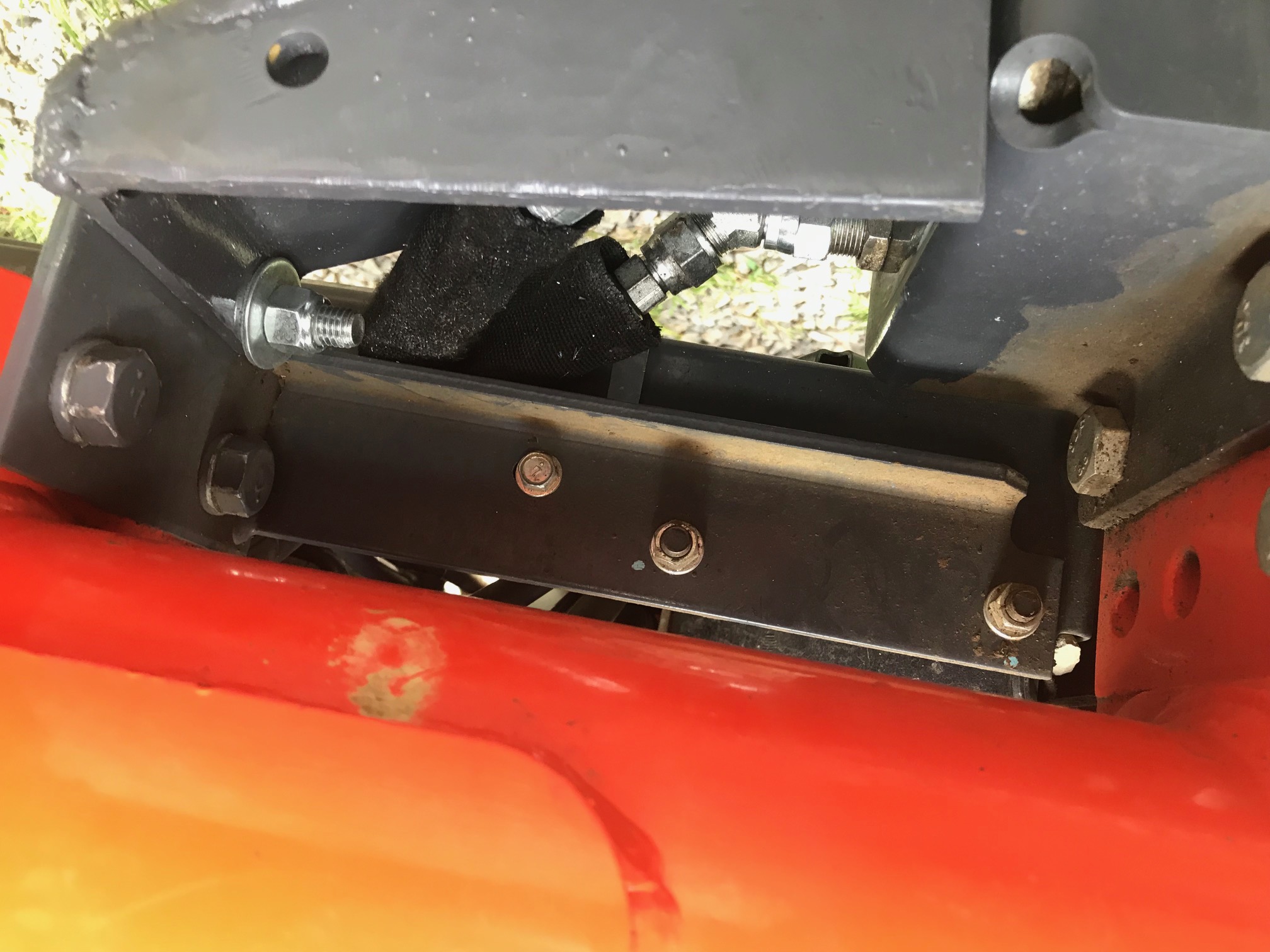 Hilbilly - there is a DEFINITE difference between the routing on my 2009 M6040 and your 2019 L6060. My hydraulic lines come out on the side of the transmission case - and are routed UP and on the inner side of the FEL rear post. There is still the shield - like you built. But nothing hangs down quite like the shield as shown in your one picture. Mine is a WR Long third function and was installed by my local Kubota dealer.