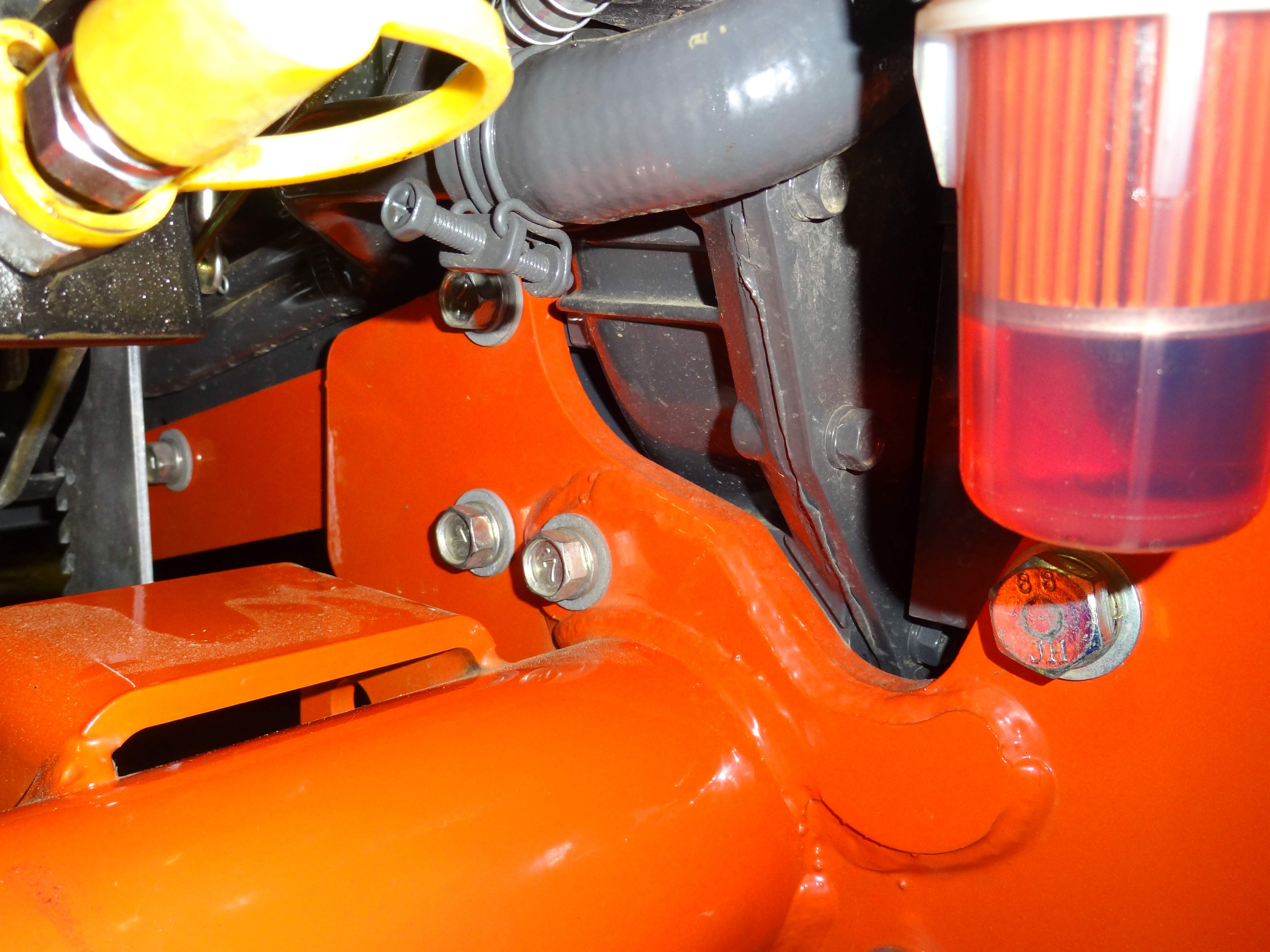 these bolts go directly into the clutch housing on the tractor. I could retap them ect. but im not sure that this should really be my problem. Dealer used the worng bolts.... The tractor was bought out of state and is still under a year old. I have KTAC insurance also.