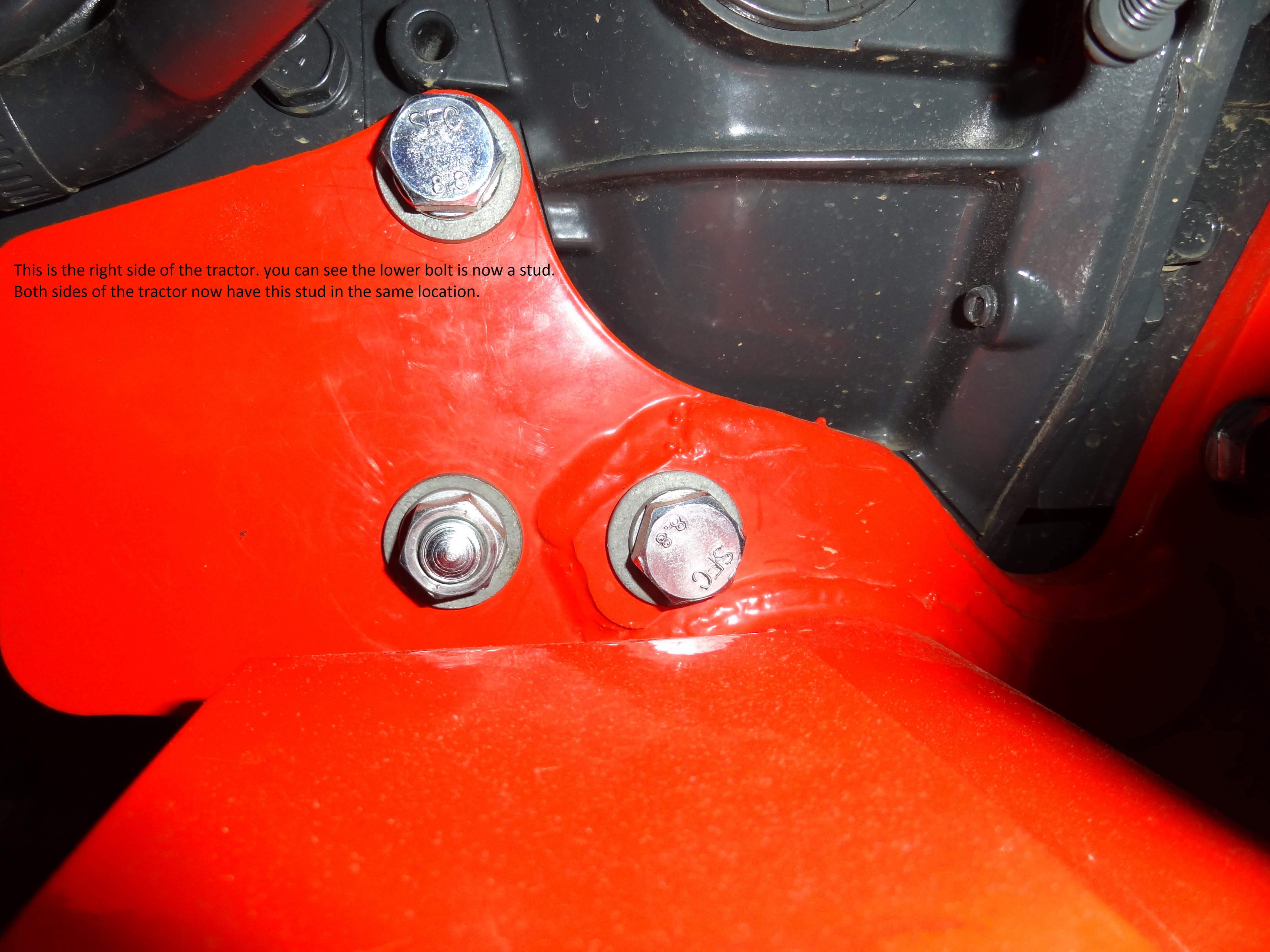 The stud maybe an issue if I ever needed to take the sub frame off. I do not plan on ever doing this. All bolts are replaced and loctited. I have yet to mount the loader to see if everything is level..