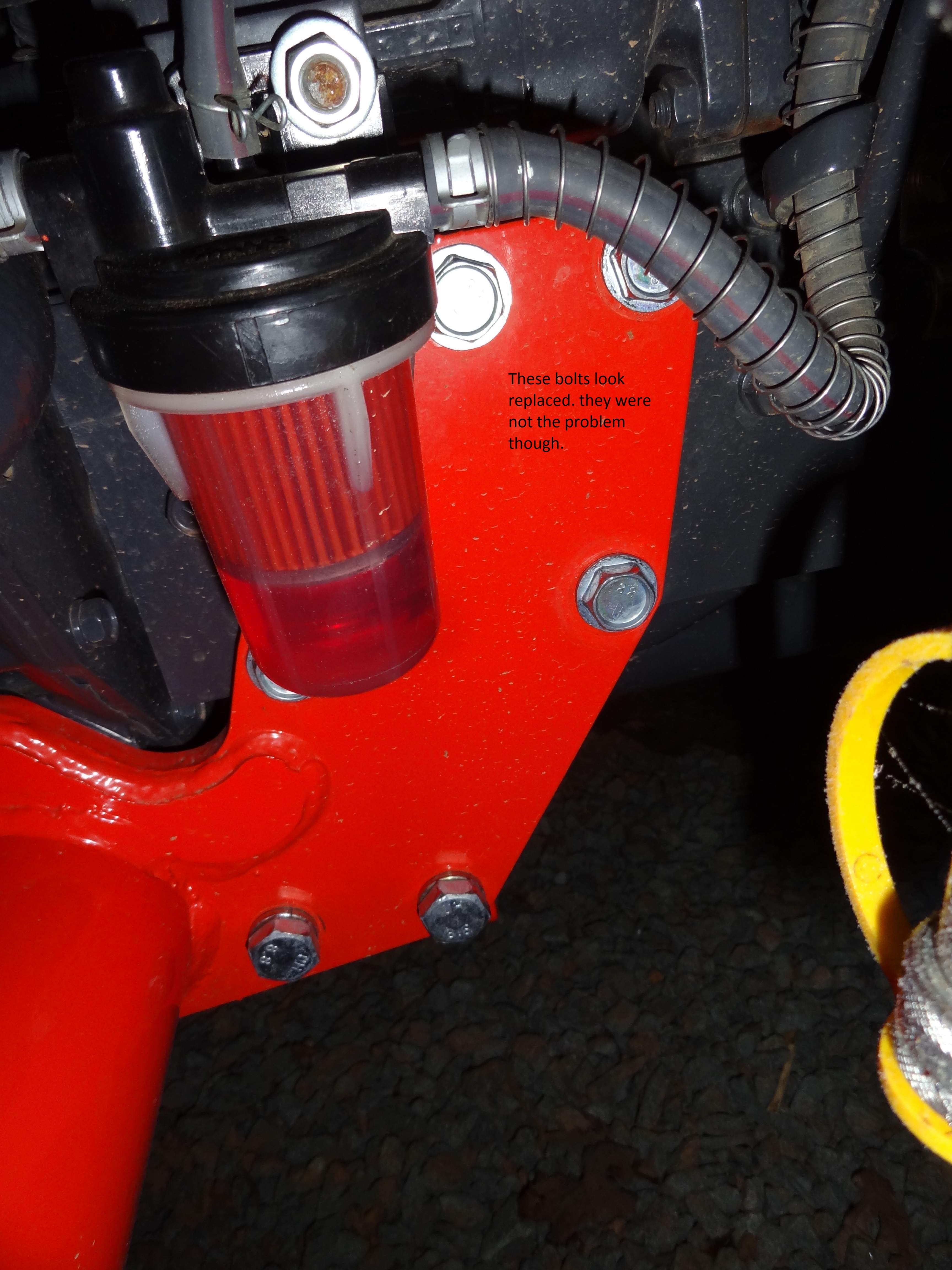 Well i will have to get some pics up tomorrow. my inlaws are still here and we just brought home some chickens. The bolts all look new and the two bolts that were stripped the worst were replaced with a threaded inserts with a large nut on the end. They said they used longer bolts in all the holes..