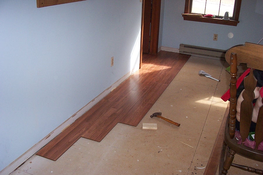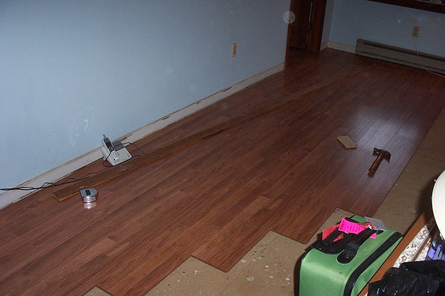 It went down fairly easy ! My problem was my back and legs took kind of a beating, closing on 58 and Im hurting today:(! Other than that fairly straightfoward after the guys on here got me pointed in the right direction. I used Pergo and went with Glendale Oak with the backing allready on the laminate, which is the way to go in my opinion. It was $2.97 per sq ft.