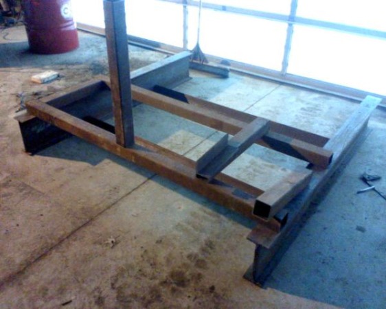 well here's today's build progress, went and borrowed a plasma cutter and wow does that do a heck of a good job. going to go hunt down some cutting edges tomorrow, a local welding shop is big into handling plows and he always has a little of everything. but im just going to do a happy medium and go half an inch below the skids and later down the road build something else for it. but in really dreading drilling that 1/2 angle iron for the bolts. i just got the two pieces of tubing welded on before i ran out of gas for the welder :eek: should have looked before i started. should get more done tomorrow. :)