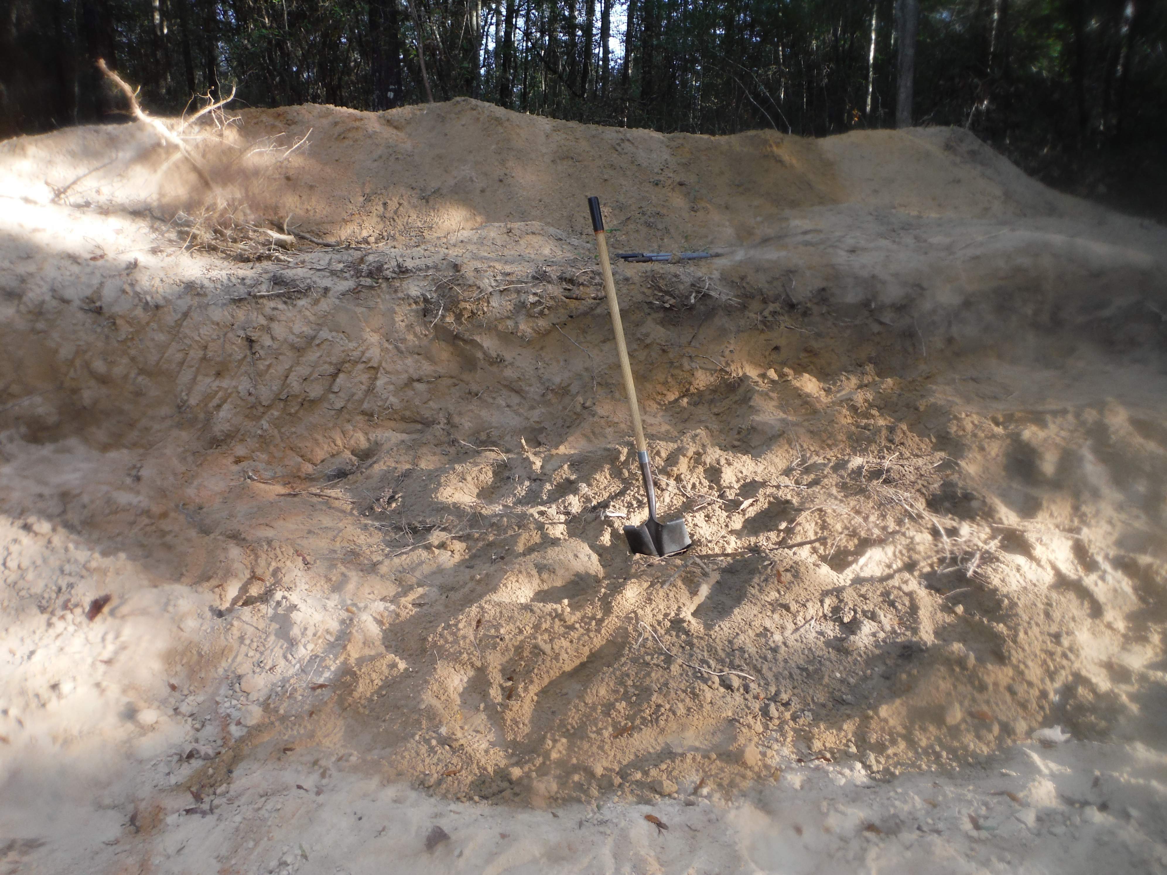 I needed to dig three front either on the front or the back. The tree roots in the back were much smaller, so that is the way I went. This is what 110 minutes of digging looks like. I dug out 3X3X12 on the north face. I have 12 more feet to go. But since I hadn't planned on going that far north, there is dirt piled up where I'll be digging. I'm going to use the 3930 and the dirt slip to see about moving as much of that as I can.