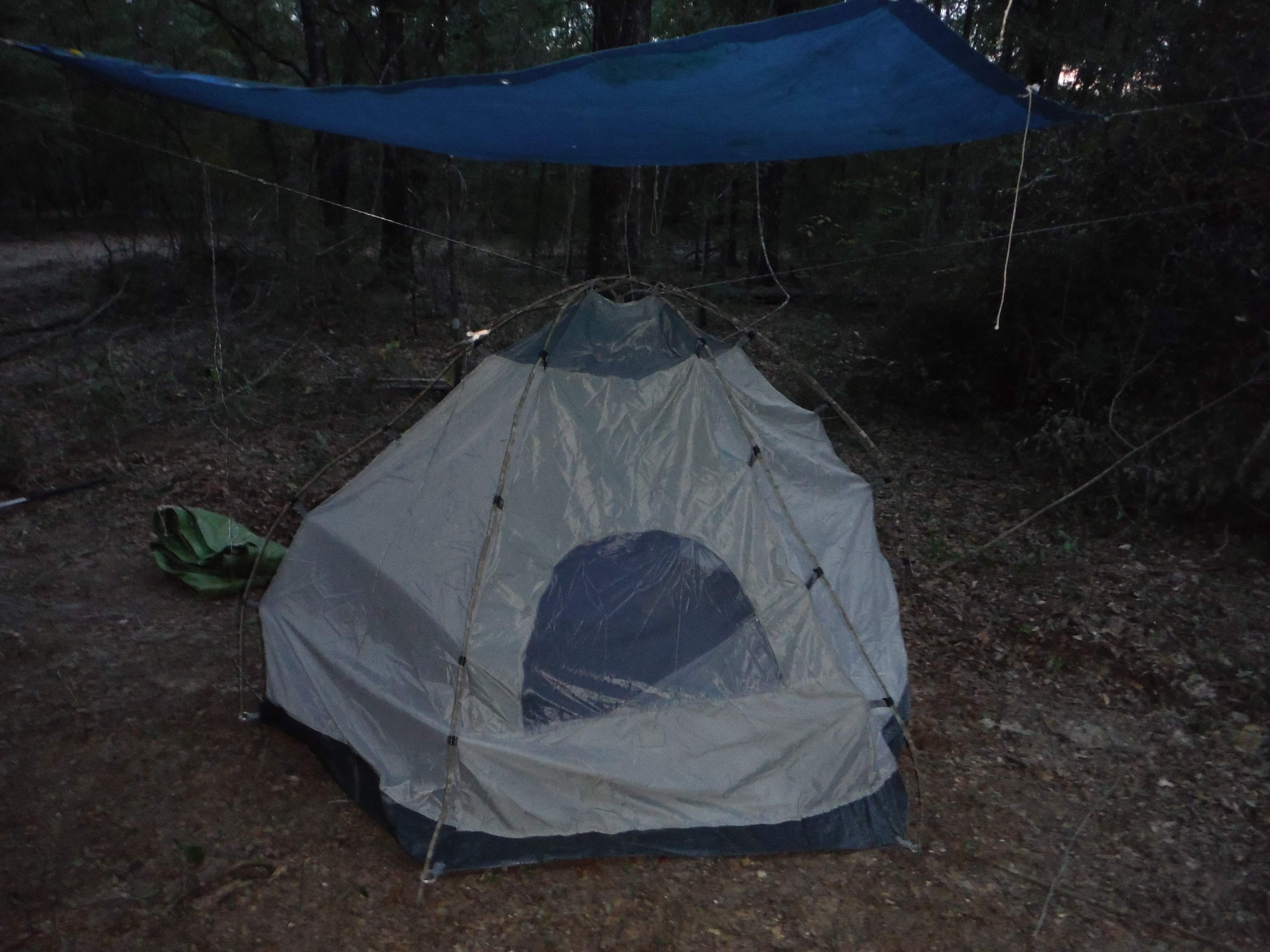 So the blue tarp keeps the water out and the tent keeps the critters out?