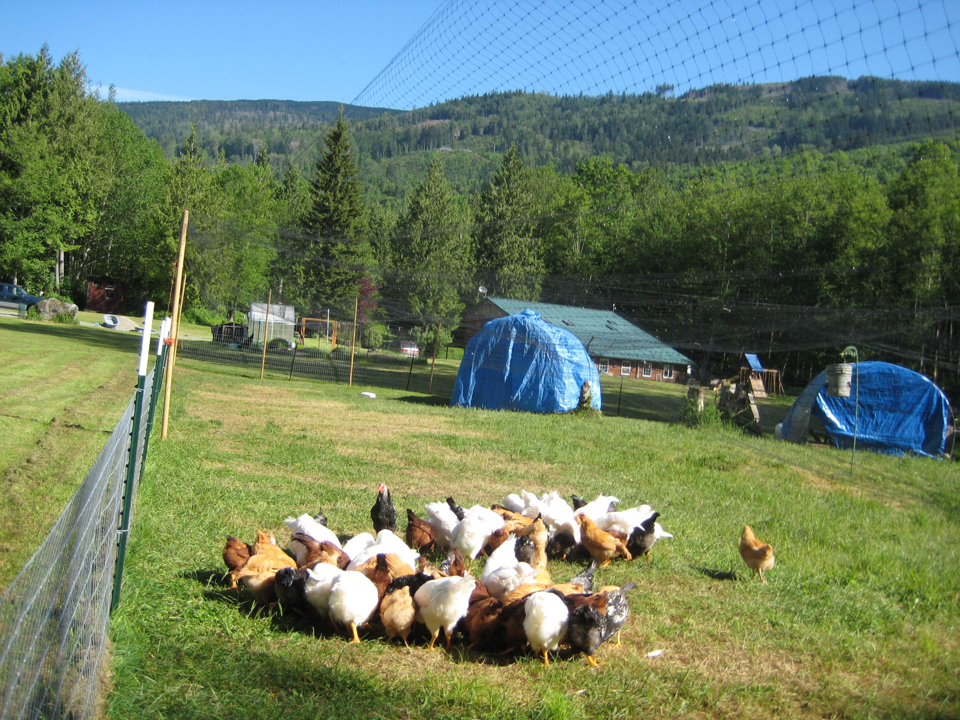 I have 20 with about fifteen in woods. The egg chickens are in a 50x50 pen, the ducks roam free as we seem to loose them when we penned them, the broilers are pastured in a 100x100 pen and the main goat pen is 120x120, the egg chickens get free range after they are done laying and I have a Gallagher, easy fence I set up for the goats, but a lot of the time I just let them wonder, but need to keep on eye on them, I'll find them on my work bench, on,top of the cars, are nibbling the rubber protectors to my hydraulics on the tractor. The broiler fence is only up for about 8-12 weeks then when we process the broilers I take the fence down. Planning on extending the goat pen this spring.