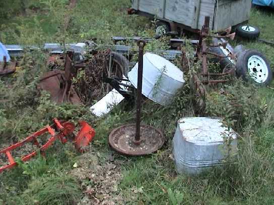 This shows an old boat moring, a tiller[works, just needs a belt], some steel from some old shelfs, and a few old garden tractor attachments. Also many more stuff..