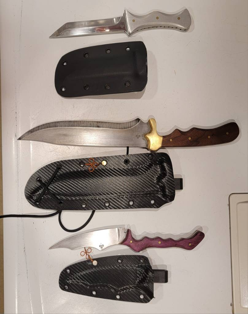 Here's what my buddy has made. He's also melted and poured the aluminum and brass for hilt and handles. Getting better with every blade!View attachment 780629