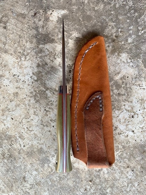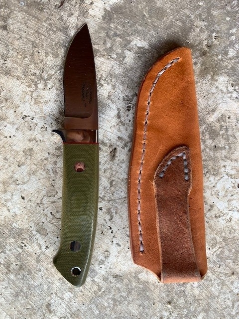 I only carried that big stainless Bowie on one or two hunts last year, when it was raining, because I didn’t want to get the carbon steel blade on my Shrade rusty, or get the leather sheath wet. The Bowie has a nice weatherproof sheath.