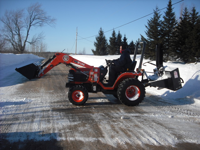What is the MFG of the attachment and plow on your bucket. I am considering this option vs buying rear blade. Have rear snowblower and like the idea for the bucket and rear snowblower together vs removing blower and puttin on rear blade.