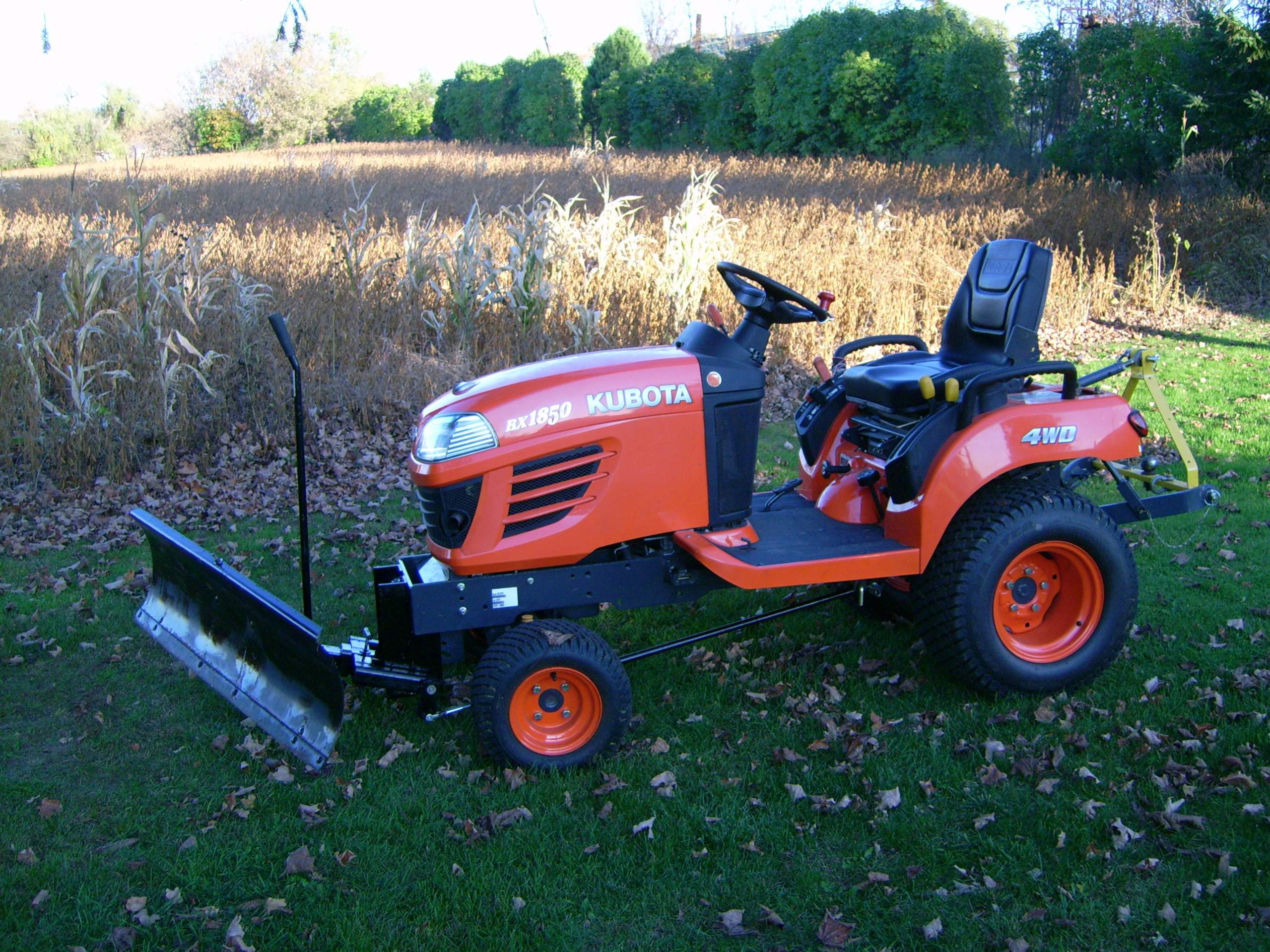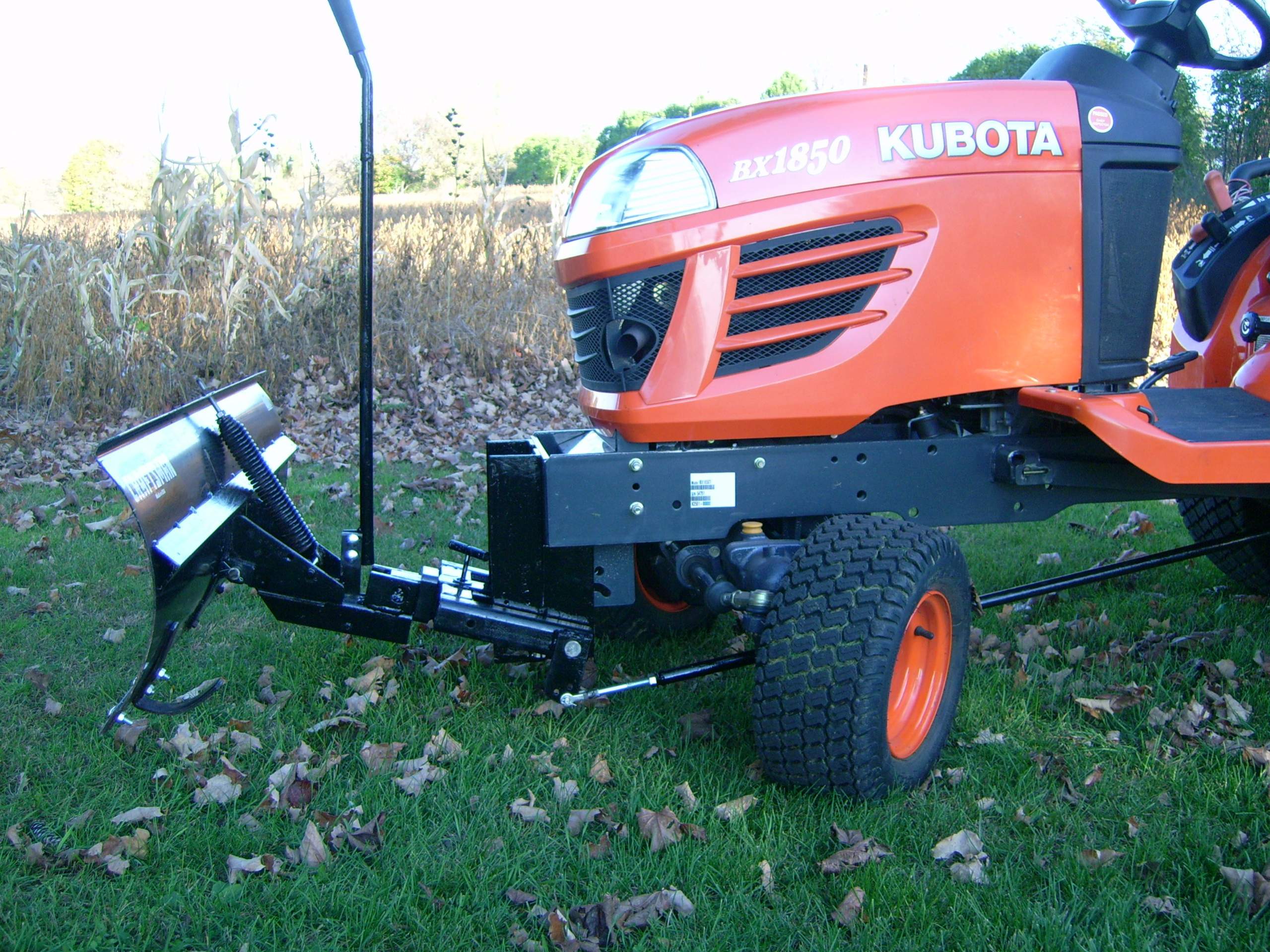 I made this front blade attachment for my BX1850 and it uses the rear 3pt hitch to raise the front blade. I use the mmm lever control to raise and lower the blade and I can use the deck height setting to even maintain the same blade height if I wish to not drag it. I have not tested it on snow as yet but in time I will find out how well it works. Hydraulics are not needed. I will need to angle the blade manually.