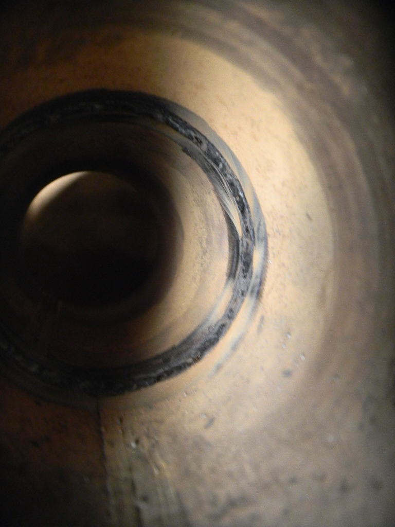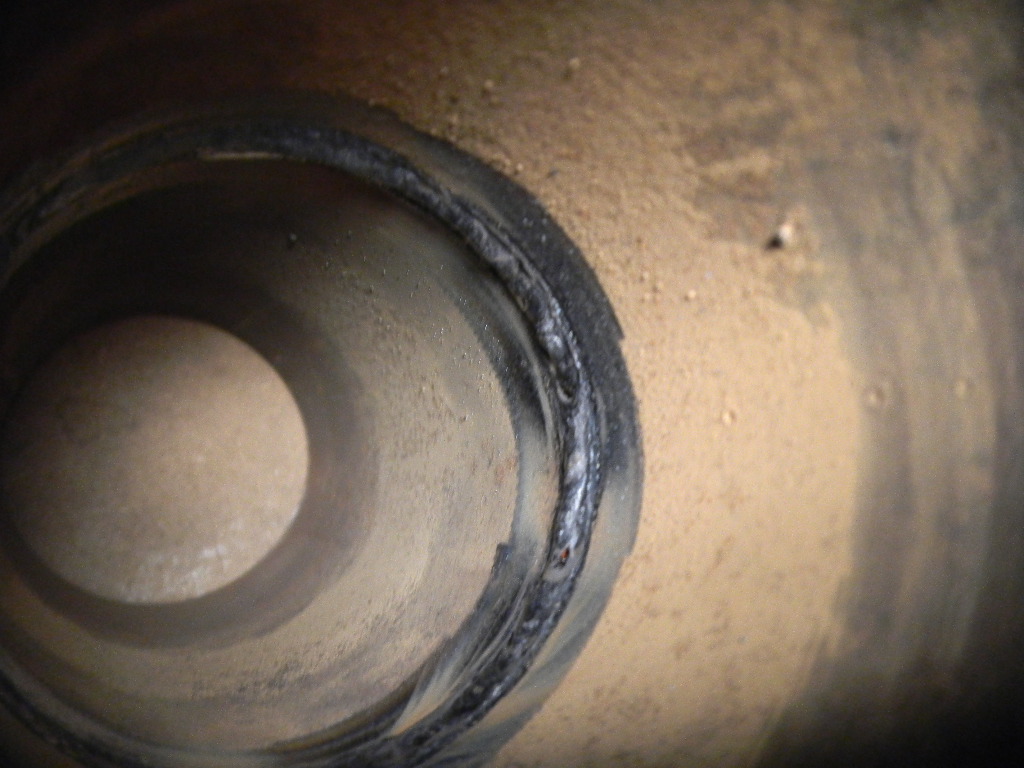 2 1/2 inch sch 80 pipe, 37 1/2 degree bevel, knife edge, 3/32 inch gap, 1/8 inch filler. Welded in the 5-G position. For anybody that doesn't understand what they're looking at, this is the inside of the pipe, that was welded from the outside. I've never got a straight answer on how much reenforcement is allowed, maybe Gary can give his opinion?