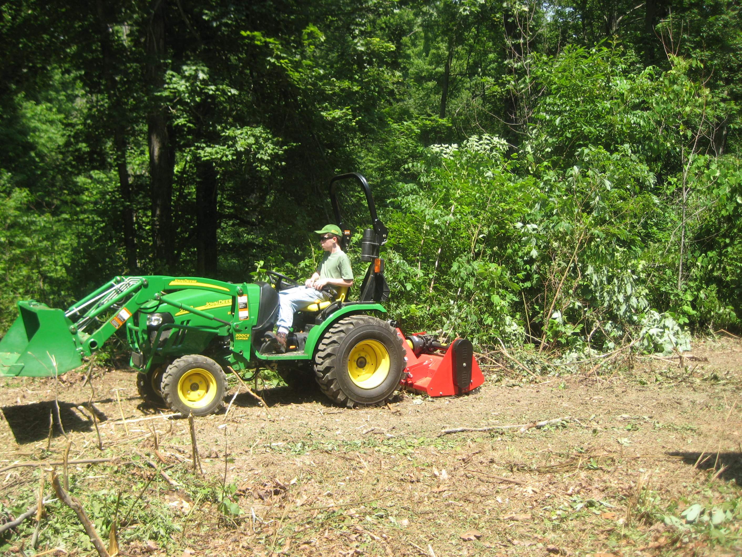 This is a picture of my son (he does have ear plugs on) going through some brush on our property. The cleaned up foreground was as thick as what to see behind the tractor. Good luck
