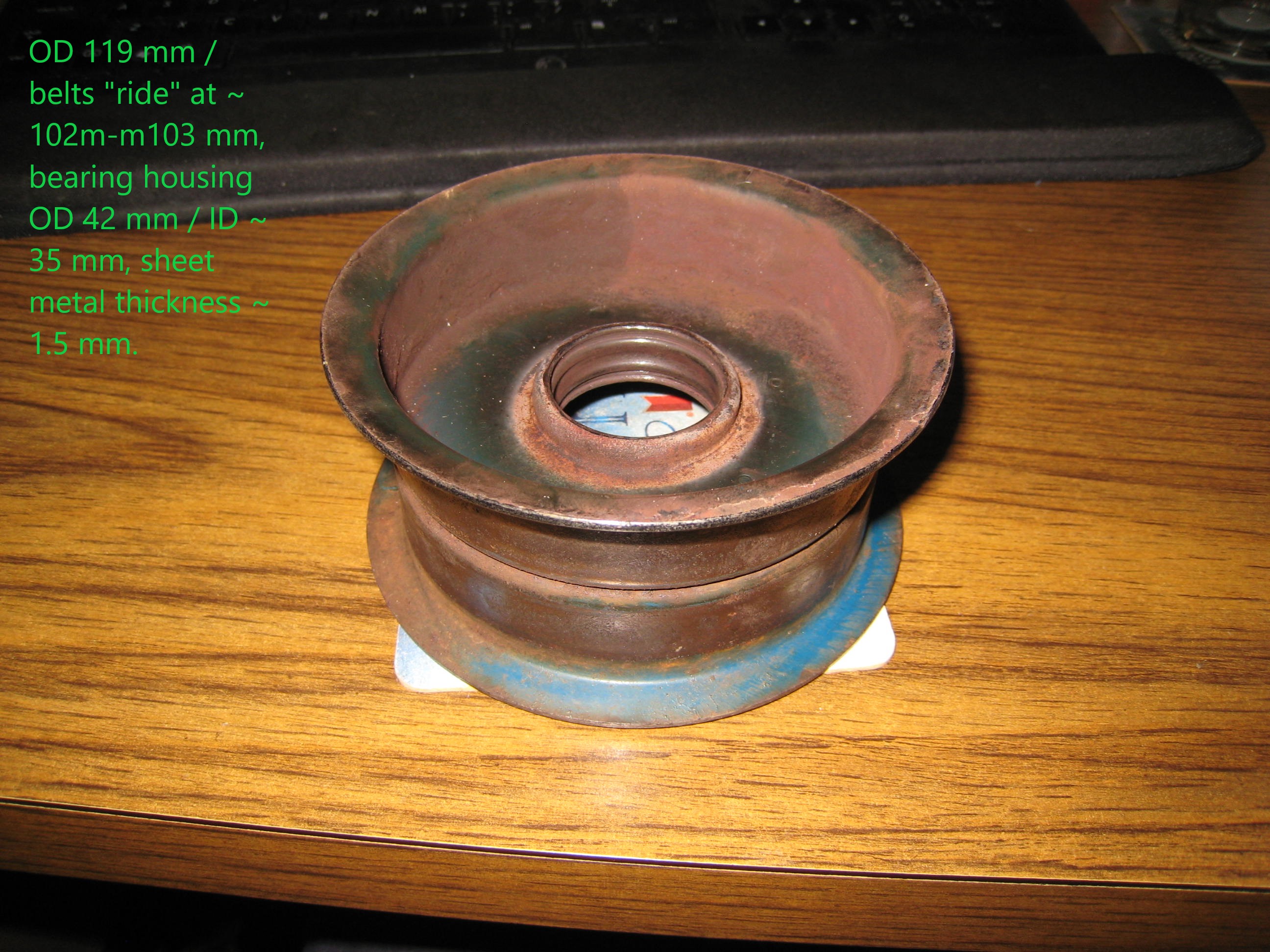 I pulled the belt cover and checked the idler. Looked out of alignment to me (first pic). So I took it into the shop and used the press to bend the support plate slightly (second pic). Back and forth a few times until I got the alignment looking good (third pic). Back together and then a trial run. After 45 minutes of cutting some light grass, the temps on the idler and belts were up to 240*. Seems too hot to me but it was a little cooler than before. There was also what appears to be some liquid grease in the bottom of the idler (fourth pic). Probably not a good sign.