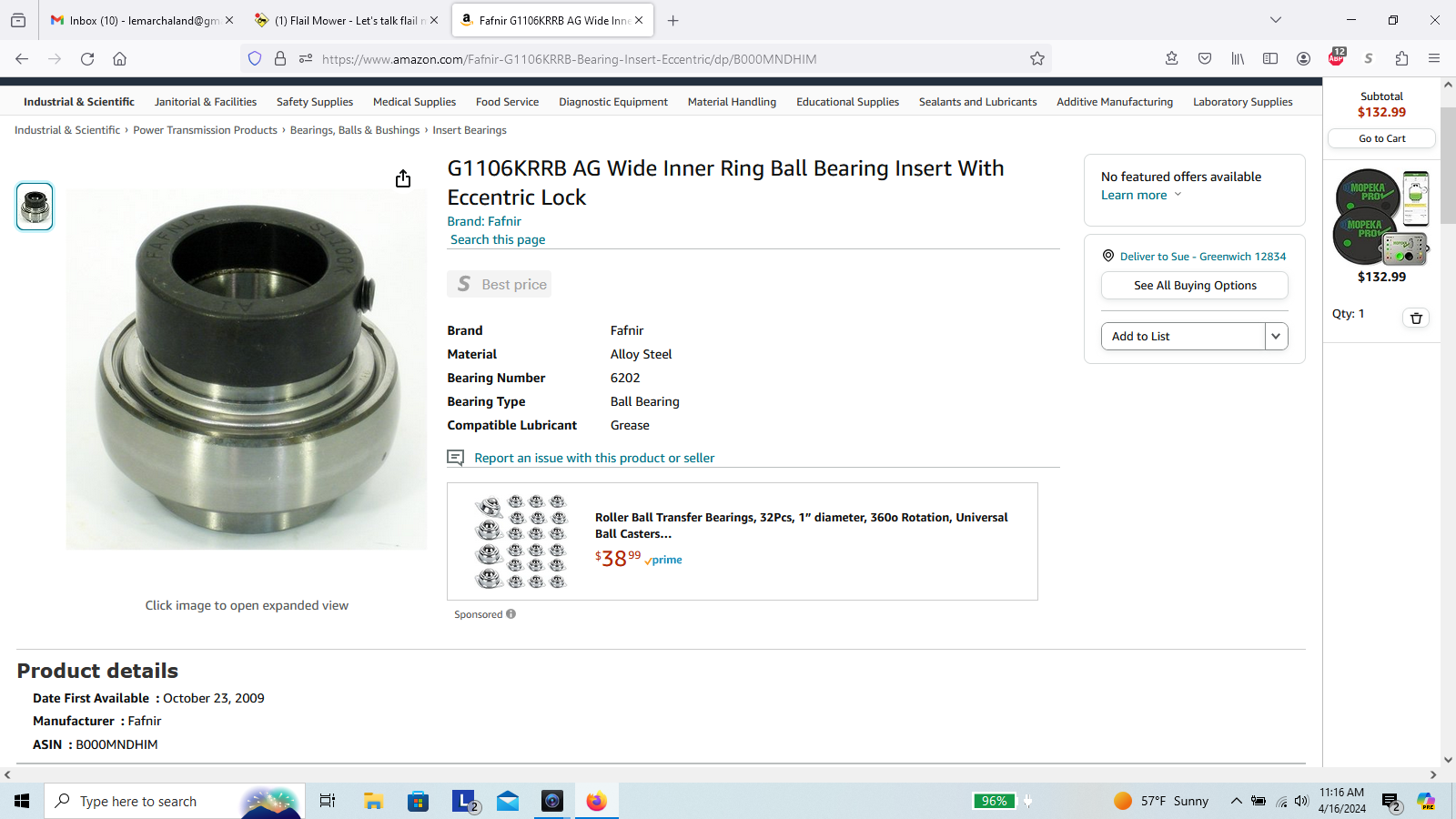 I got my Mott 72" fine cut out to use and found one of the bearings in the roller had gone south. It is an older style with the bearings inside the roller that unfortunately Flail Masters is not carrying anymore. So now the search begins to find replacements, FAFNIR 1106KPPB Z. Yeah I will replace both sides to be safe. BUT the problem is the only ones I have been able to locate so far are priced at nearly $500 for two bearings that should be, IMHO, around $100 each and the spacer for the side with the bad bearing is $125 which is nothing but an extra thick washer.