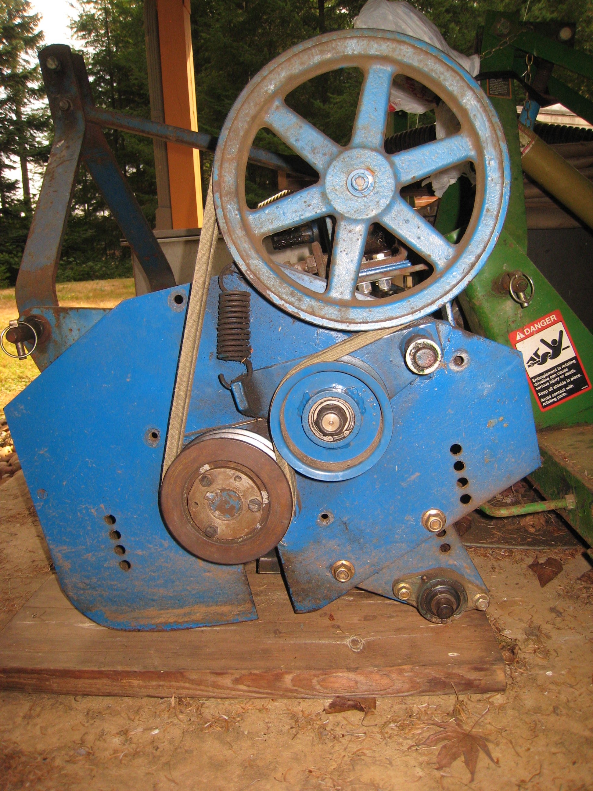 Something was striking the gear box when it was raised too high to increase the belt tension.