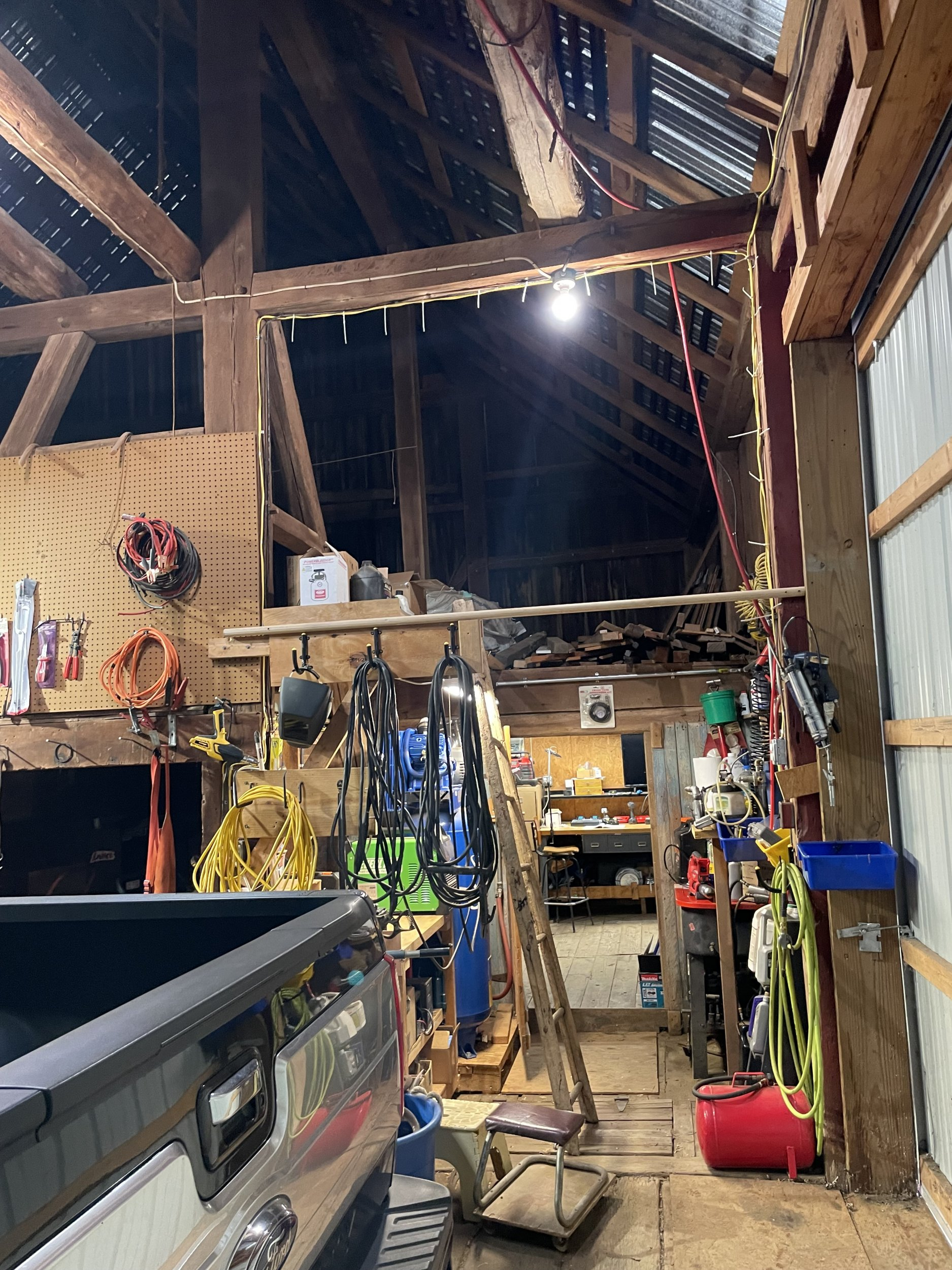 Cool. Hard work. My fork is just above the rope hanging in the middle of the pic.I grew up filling hay lofts using the rail at the peak of the roof. Wagons parked outside the loft door. Hay forks could pick up 4 square bales at a time. Rope/pulley system went out the back of the barn where a tractor was used to pull the hay inside the barn. Great memories.