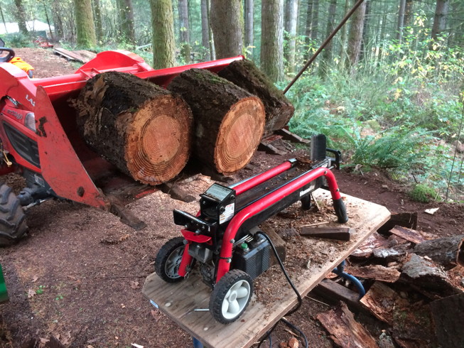 I never used a tractor splitter but that one is a beast, Seems like a good enough deal. For me it wouldn't work unless I had another tractor for lifting a pallet to the work table.