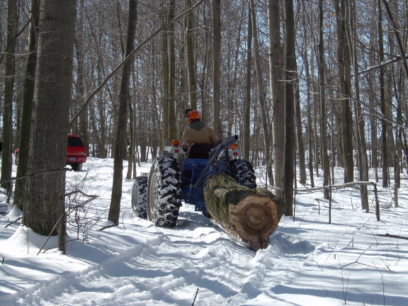 Greetings... I am about to pull the trigger on a new tractor. Was going to get the ags as mostly this tractor is used for logging however I have about maybe 5 years left of gettable wood after 34 years of logging the area. After that I will be buying (oh the horror) stems and using the tractor for snow and wood landing work only such as piling logs, bringing them to the splitter, moving splits up to the shed, etc,etc. I have looked at just about all the discussions of ags vs industrials but what most of these discussions are missing are details that make all the difference in the world. How else can anyone explain why some have no problem plowing snow for instance and others are slip siding all over the place with industrials. So it is best that when these questions arise, that specifics are stated to perhaps match those that are already working a certain tire in a certain way with certain tractor weights. Here are my "details". I'll be getting a Mahindra 3016 that if I go with industrials will be upsized to 43x16x20. These will be filled adding about 800 lbs to the tractor which will then weigh in at a bit over 4000# with fel. My question is this. Does anyone using ballasted industrials have problems logging in the woods or do these tires need to be chained to be effective? My terrain is relatively flat with minor grade deviations and is dense forest with ground obstructions. Mostly dry and mostly oaks. I skid when the ground gets hard and/or snow covered. I have skidded with as much as a foot of snow on the ground but mostly in 2"-6". As far as ground clearance, there is about an inch difference with the advantage going to the 11.2x24 ags.