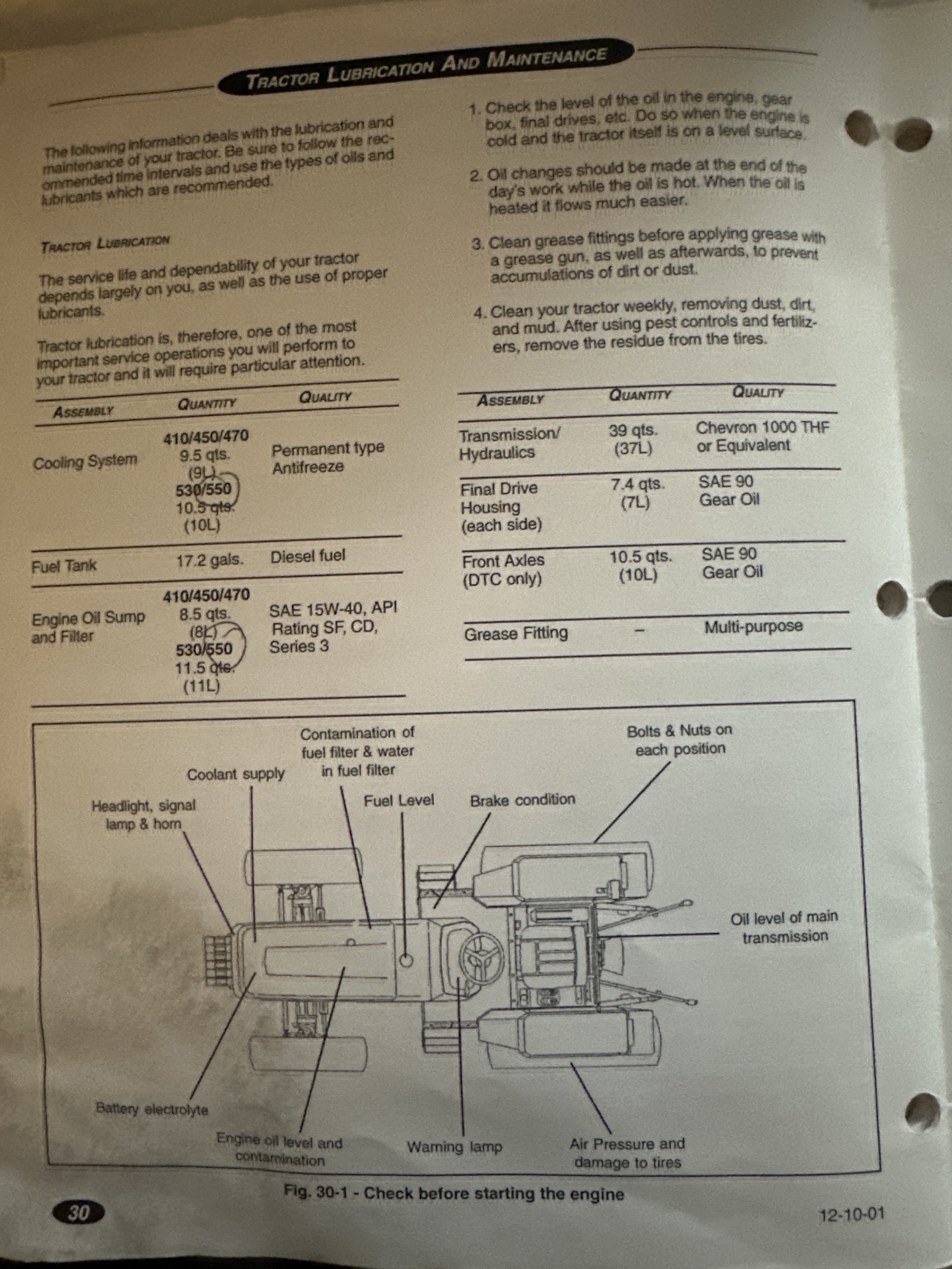 I bought a used 2001 long landtrac 530, I am trying to find manuals on it as well as determine the type of Mitsubishi 3.3 liter 4 cylinder diesel that is it, currently for the purpose of figuring out which freeze plug hole I would be able to install a block heater in. Also I am not sure the type of fluid for the hydraulic system. Any help would be greatly appreciated