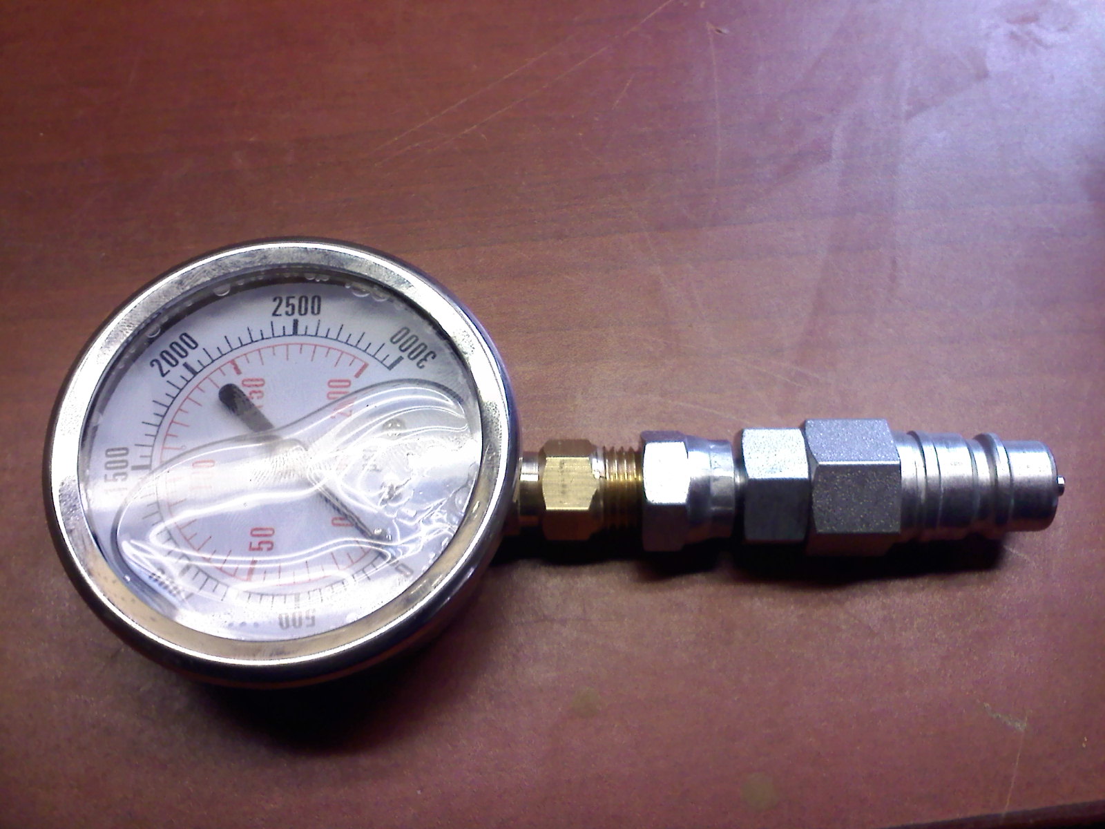 I got my hydraulic gauge put together today. I bought the gauge online (https://www.surpluscenter.com/item.asp?item=21-1044&catname=hydraulic). After it arrived I went to the local JD dealer to get the male hydraulic quick coupler plug (AM102420) for the gauge and the hydraulic shims (AM875169). I then went to a local hydraulic shop to get an adapter to join the gauge to the coupler plug.