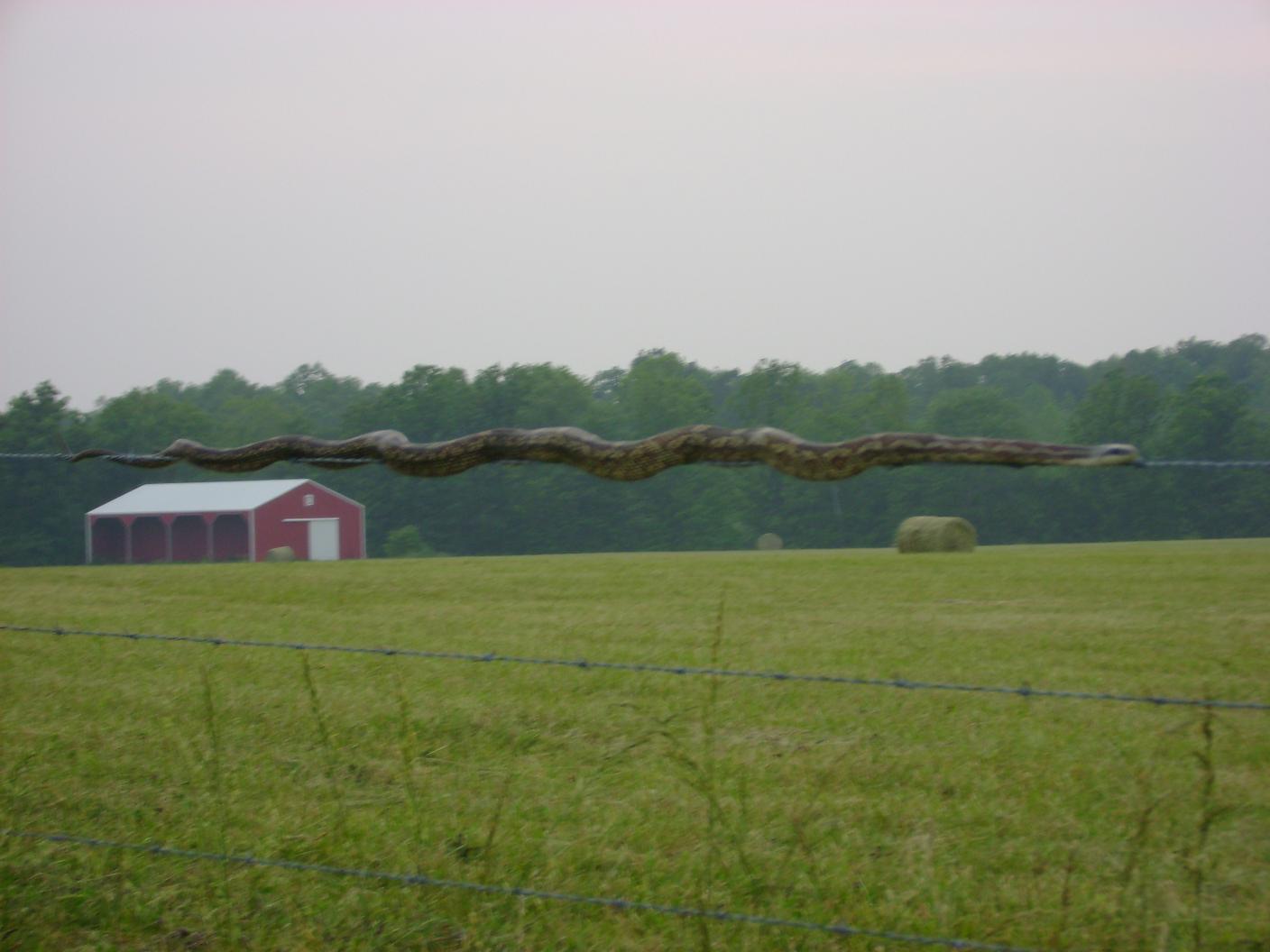 I was getting hay off the field and saw it. The fence is six strands of barbed wire (about 5 1/2 feet high)