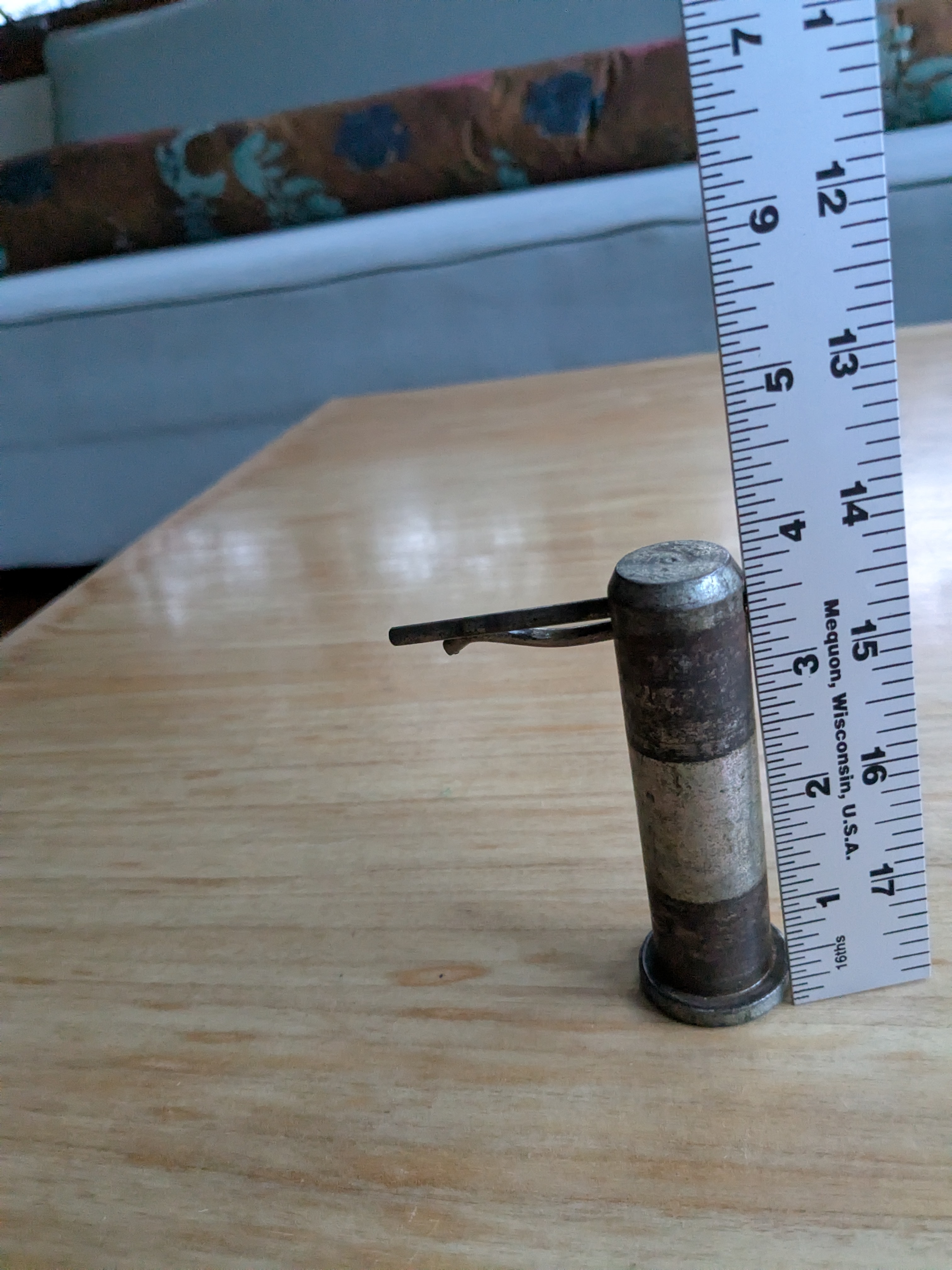This is a closeup of the pin. Overall length is 100mm or 3.9 inches, diameter is 24mm.