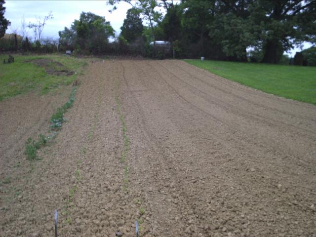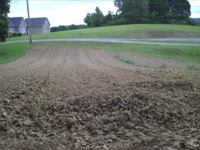If I read this right, you have clay soil, a steeper sidehill, plowed it when it was wet (because it never dries out) and now you have clods that don't break up even with the tiller.