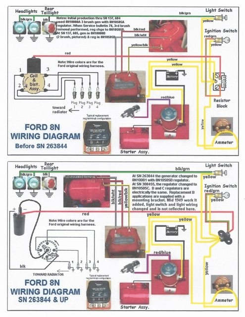 Back to where I was before I jammed the over-run coupler. Ran the 8N, original 6V Front mount for about an hour yesterday with out problems. Thought I finally had the bugs worked out. Ran it today, starting hearing a little missing and by the time I got it home had a definite miss. Shut it off, checked fuel, plenty fuel from the carb. Checked spark. No spark at the first 3 plugs but got a bit of orange at the last plug and it actually started but was missing. Checked battery with a battery tester. Got good indication both no load and load. Multimeter read 6.2v without it running. No drop when running. It may have been starting a little easier as it cooled but could be my imagination. Previously, it was doing the same thing and I removed the new coil and put the old one back in which worked till now (approx. 2 hrs run time) and is why I thought I might have figured out the problem. Is it possible I have 2 weak/bad coils? I find that difficult to wrap my head around but with the quality of the other parts I've replaced, maybe not. All the parts are from TSC so I am getting suspicious...Any thoughts? Should I get another coil and try that? It just occurred to me that I should check the voltage to the coil first but if the schematic I have is correct the coil voltage comes from the resistor block after passing thru the ammeter and ignition switch. So, if I had low battery voltage it shouldn't crank or get an ammeter indication? I am getting both of those. I'll check the voltage to the coil but if it isn't getting 6 volts or enough amperage (should I disconnect the coil wire and check the amperage in series?) where should I start to look for voltage loss? For info, the generator was replaced with a new generator and a cutout vice a VR. It only had one wire to connect and the guy was very specific as to how. I doubt even I could screw it up!