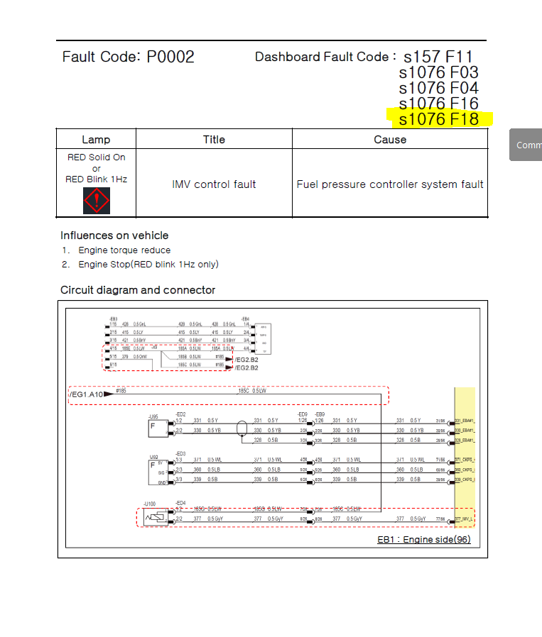 s1076 F18 (P0002) - IMV control fault