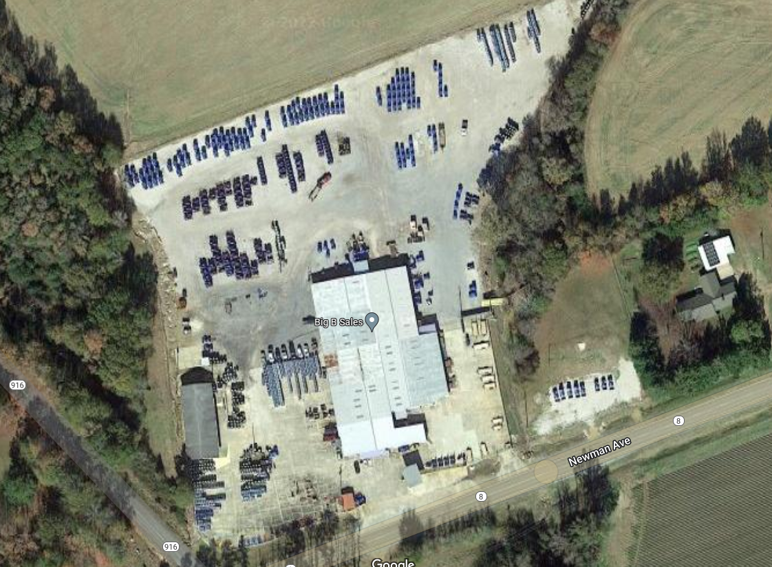 This is the back of their yard and then it wraps around the left corner. More tractors were on the left than the back. Back was mostly Tires, and other parts.