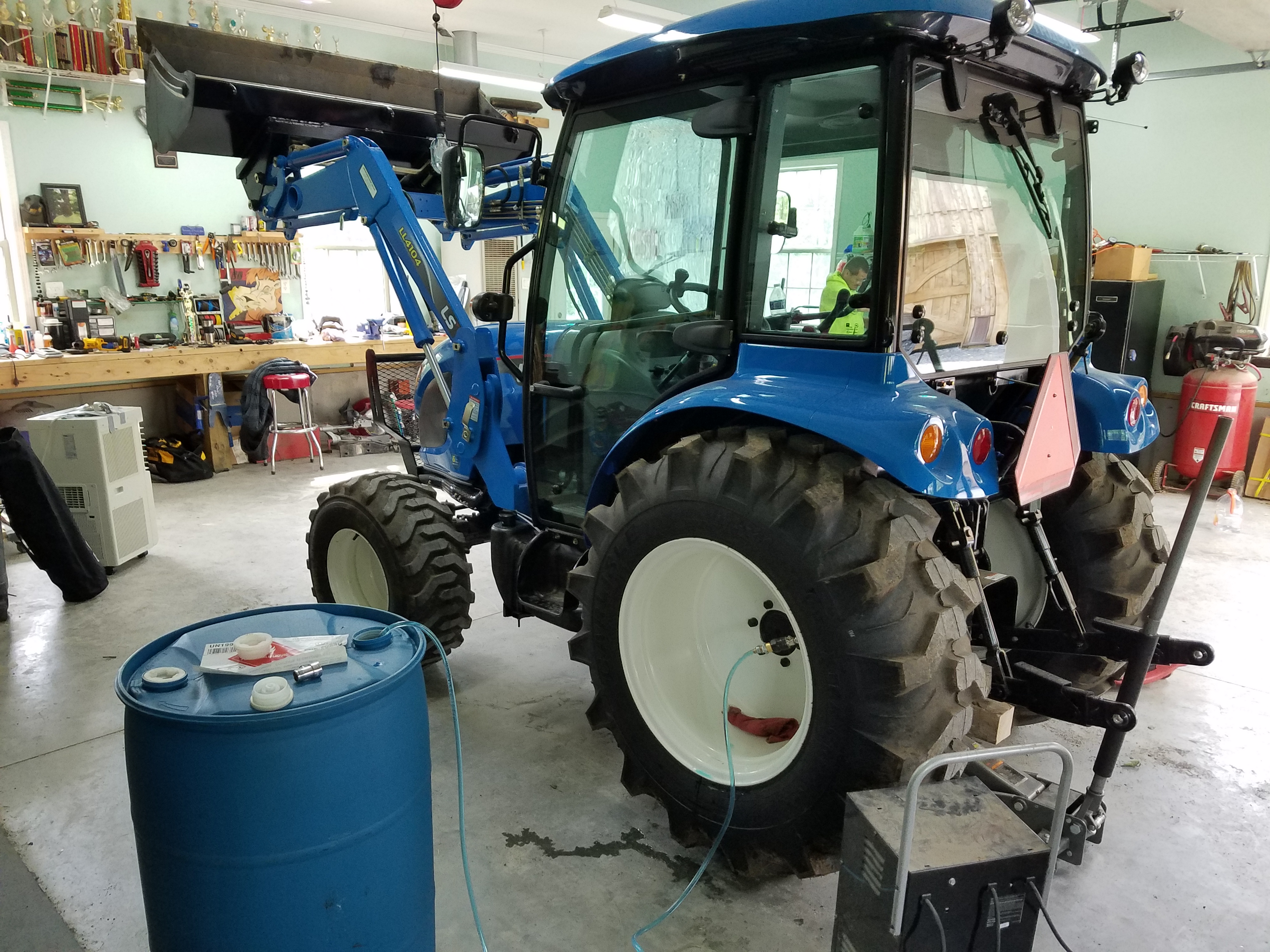I just painted up my steel for my skit plate just like Cataclysm's ... do you think I will be ok if I mount it to the bottom of the loader frame for easier 1 person installation and removal or do you think the 2 inches of clearance that you loose can be an issue? I also welded on my expanded steel in the brush guard and painted whole brush guard and expanded steel black. I think it looks better black! while I was doing this stuff today I pumped in about 45 gallons of winter mix washer fluid into each rear tire that I purchased in bulk from a local company that makes it.. way less than beat juice. cost me 250.00 for 2 55 gallon drums along with hoses and stuff needed to do it. overall it was a good enjoyable day of playing in the garage with the tractor!View attachment 520481View attachment 520482View attachment 520483