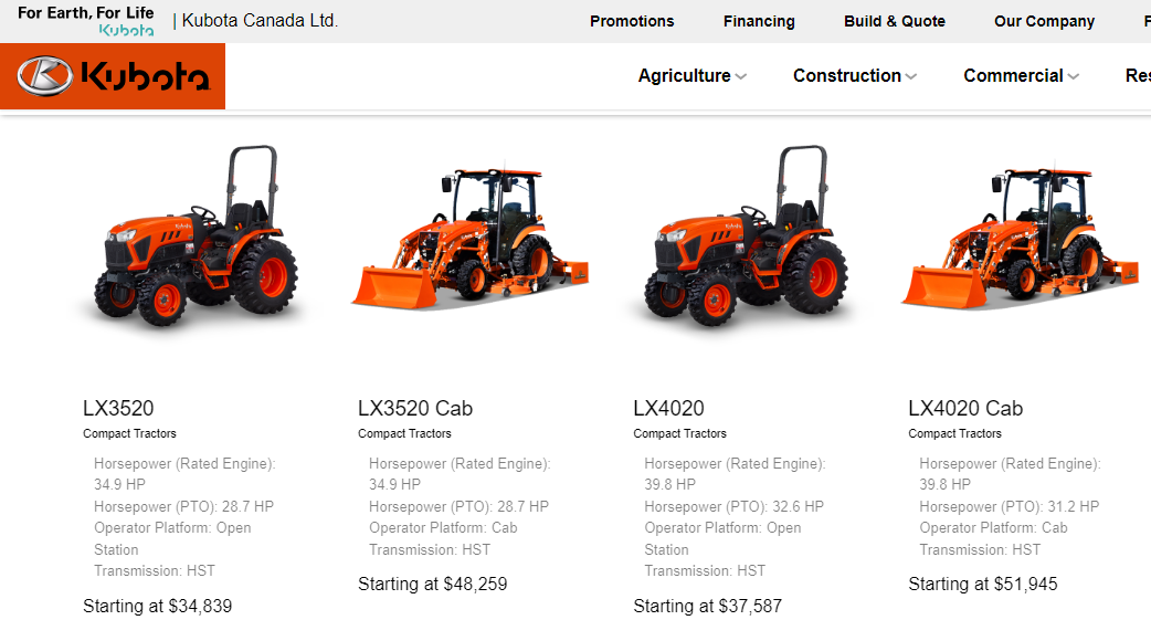 Is it just that Kubota Canada never updates their web site or are these not available in Canada yet? I have yet to hear about or see an LX35 or 40 here yet.
