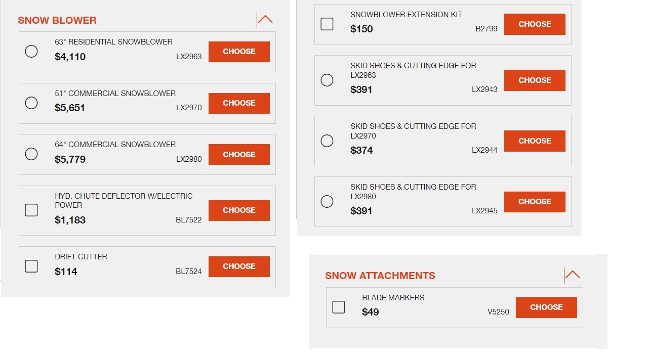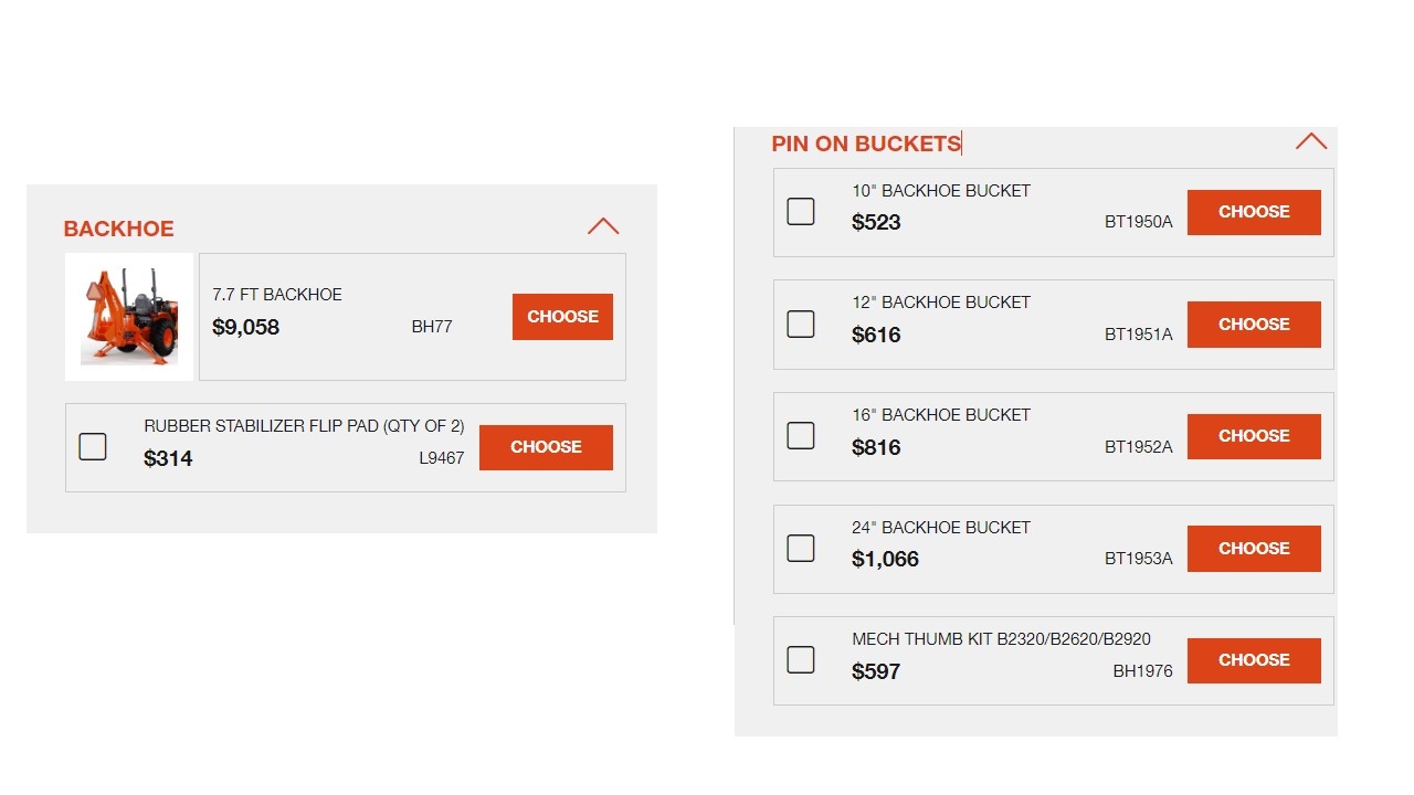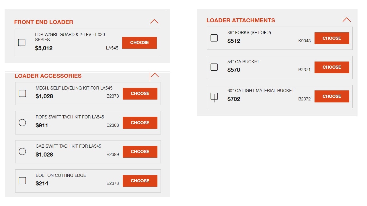 BTDT, but it doesn't, or, at least, it doesn't for me.Here is the link of the configuration page which seem to have all the options: Kubota Tractor - Build My Kubota