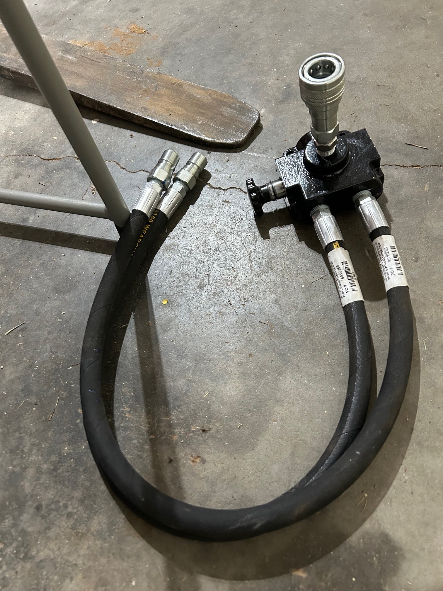 I see your question as when you use the pounder directly hooked up to the supply hose you lose all your other tractor functions - motion, FEL, etc.. I built the valve setup below to resolve this issue. On my BX it was a 1/4 setup, on my LX a 3/8. It allows me to plug back into the tractor return via the coupler and use the valve to divert fluid to tractor operations or pounder. However, for my basic question on the connectors I omitted this valve as it only complicates the basic quick on my couplers. My connectors fit but do not seem to be allowing fluid to flow which is way I bypassed this valve and showed it connected directly as that should work as well. In the photo below the female gets the tractor supply, one male goes to pounder the other male to back into tractor. The valve controls which one is getting the juice.