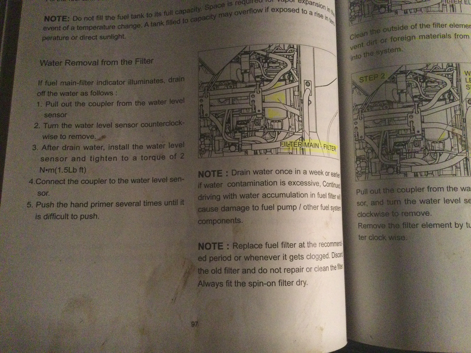 Oil & Fuel Mahindra 1533 had fuel with water in it and I don’t know what I am doing except trying.