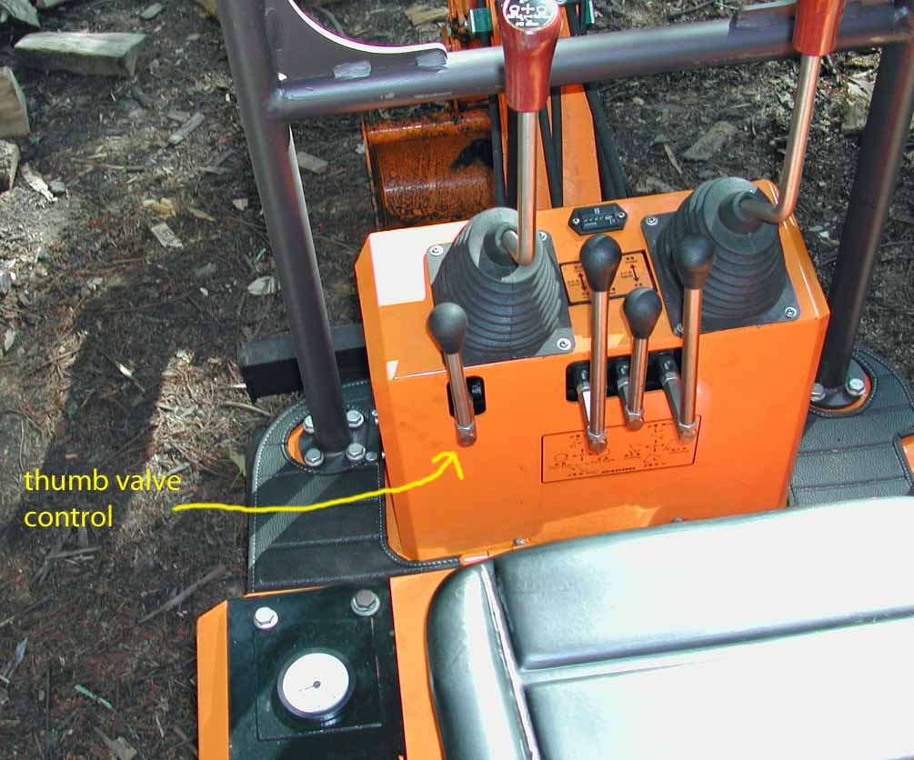 As shown in my other mini-X thread, I bought a spare 8-spool stack valve for this machine. The AUX valve is intended for any hydraulic device installed on the dipper, but it comes detented. The maker sells an hydraulic auger, which I did not buy, but I question the value of a detented valve with a single-pump system. It really needs a spring-centered valve, like the other 7.