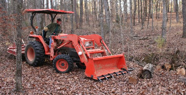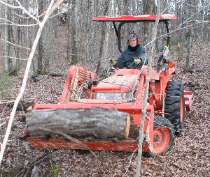 Next year go for a back hoe and you would be able to put the tree in the bucket. Jay